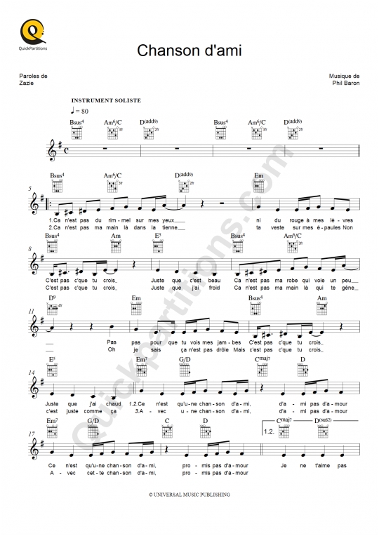 Téléchargez la partition Chant À ma place de Axel Bauer & Zazie. …
