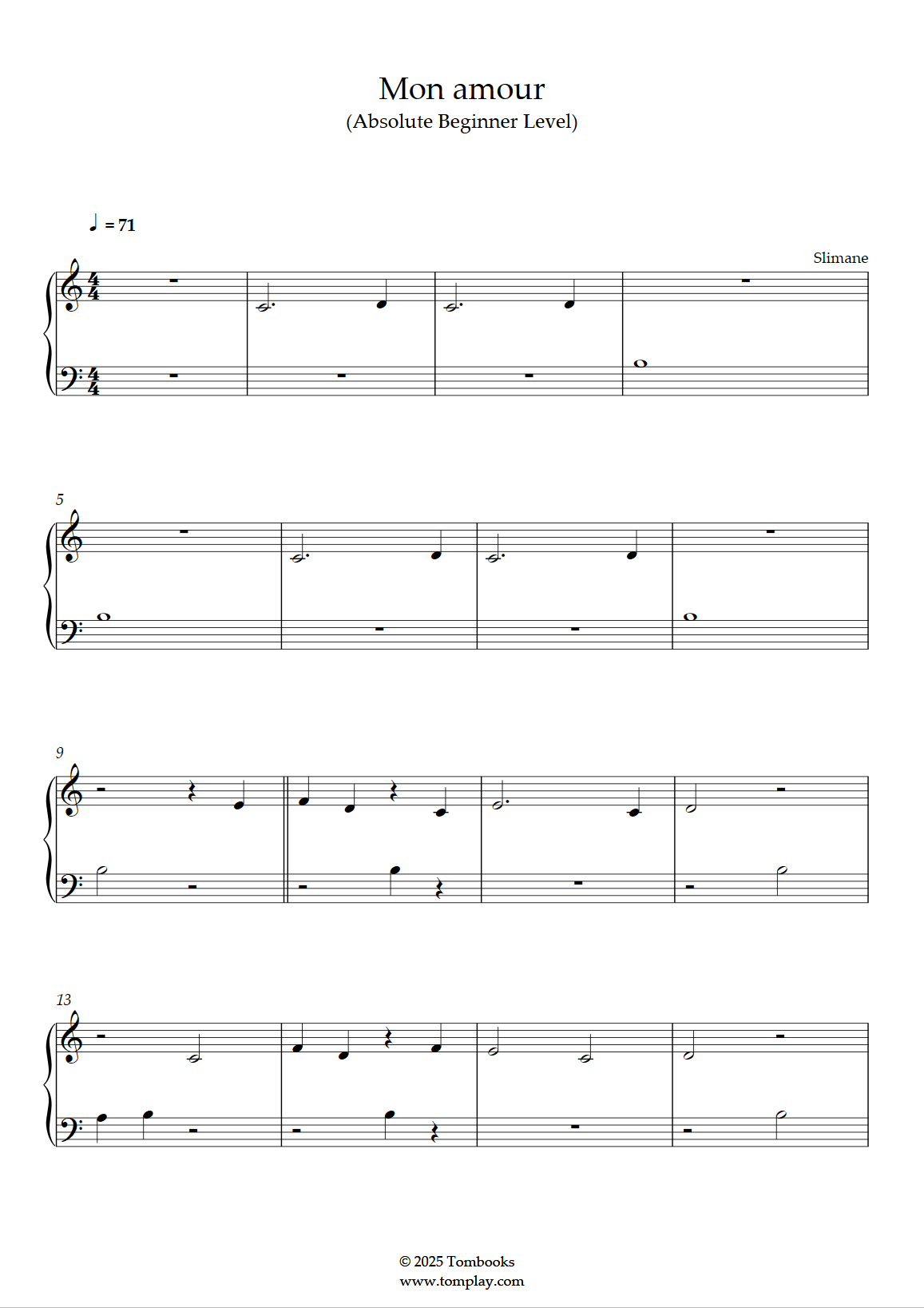 Slimane : Mon amour (niveau intermédiaire, piano solo)