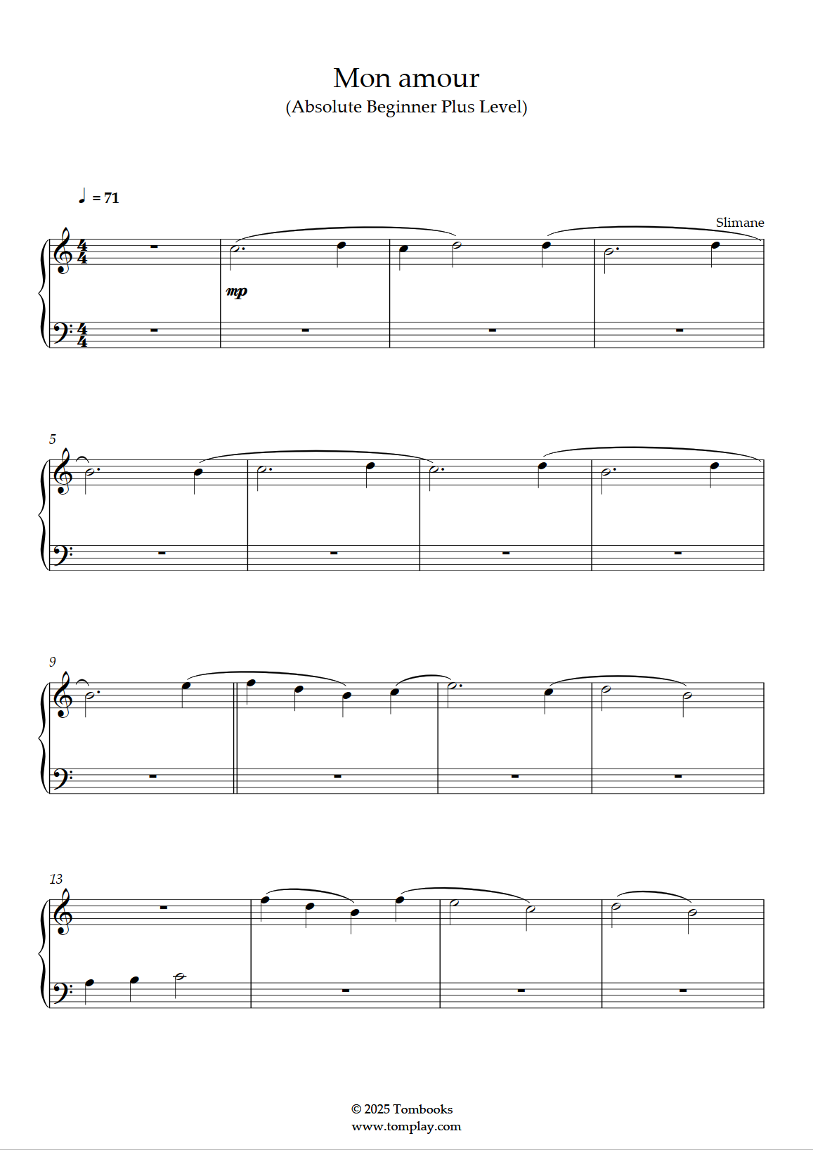 Téléchargez la partition Piano Mon amour (niveau intermédiaire, piano solo) de Slimane. Pa…