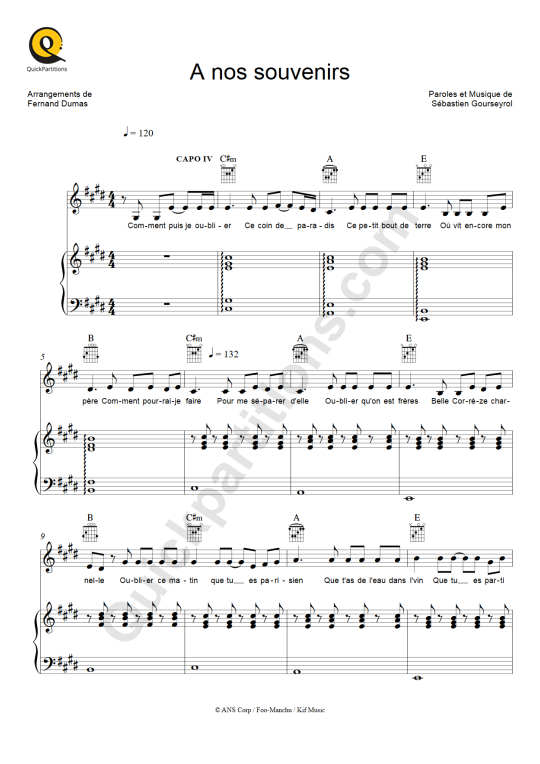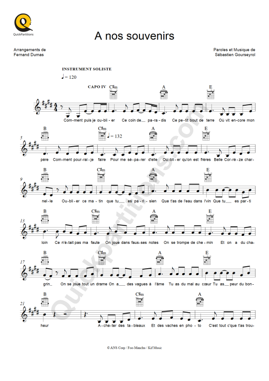 Téléchargez la partition Batterie A nos souvenirs - Version originale (nivea…