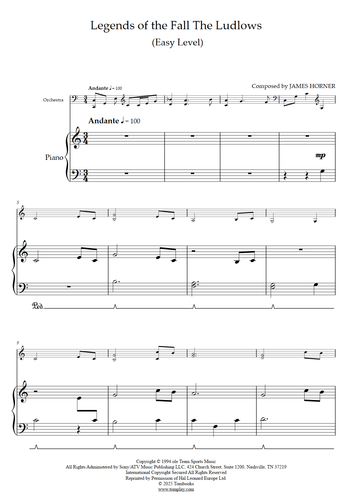 Téléchargez la partition Piano The Ludlows (niveau facile, avec orchestre) de James Horner…