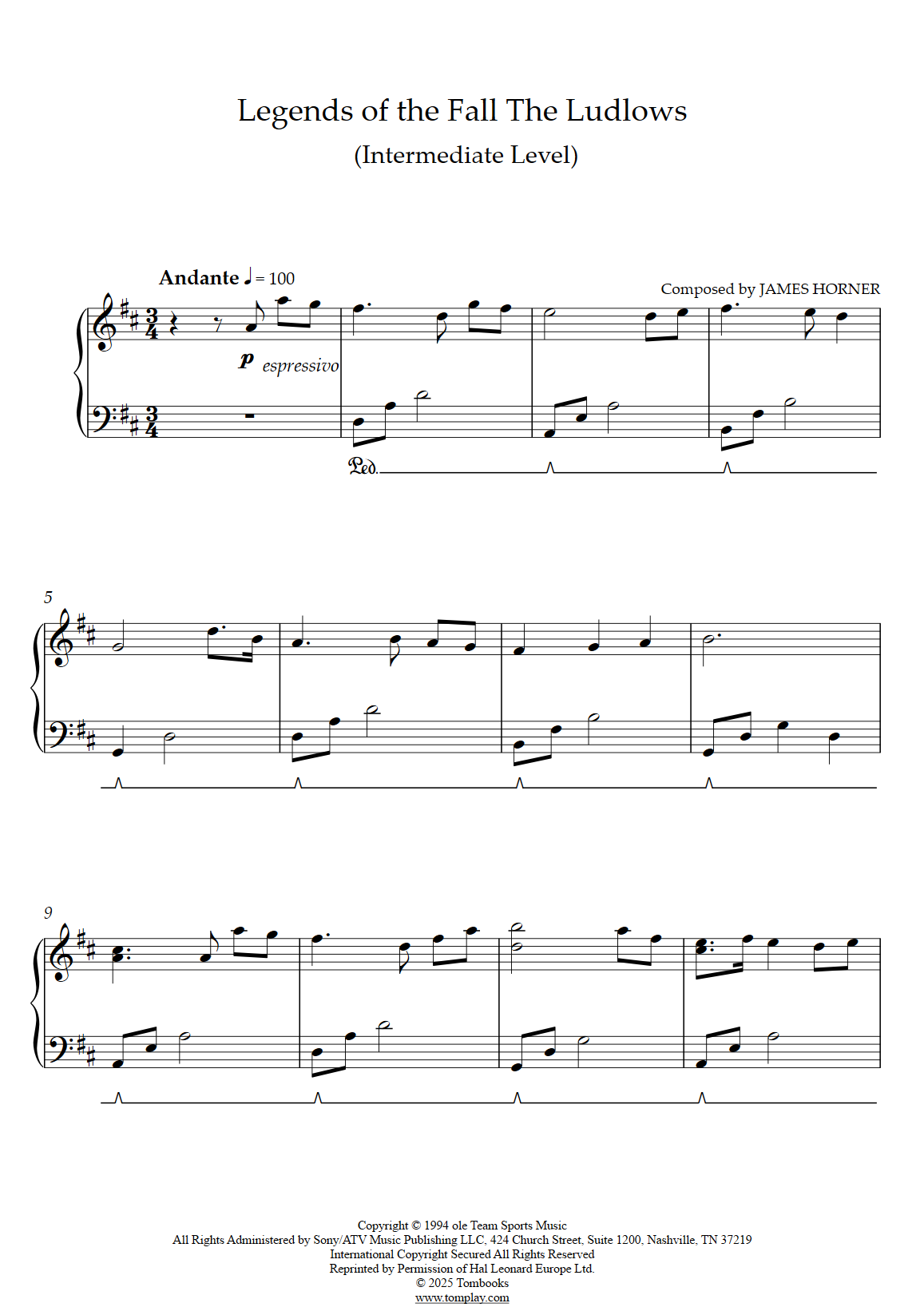 James Horner : Légendes d'automne - The Ludlows (niveau intermédiaire)