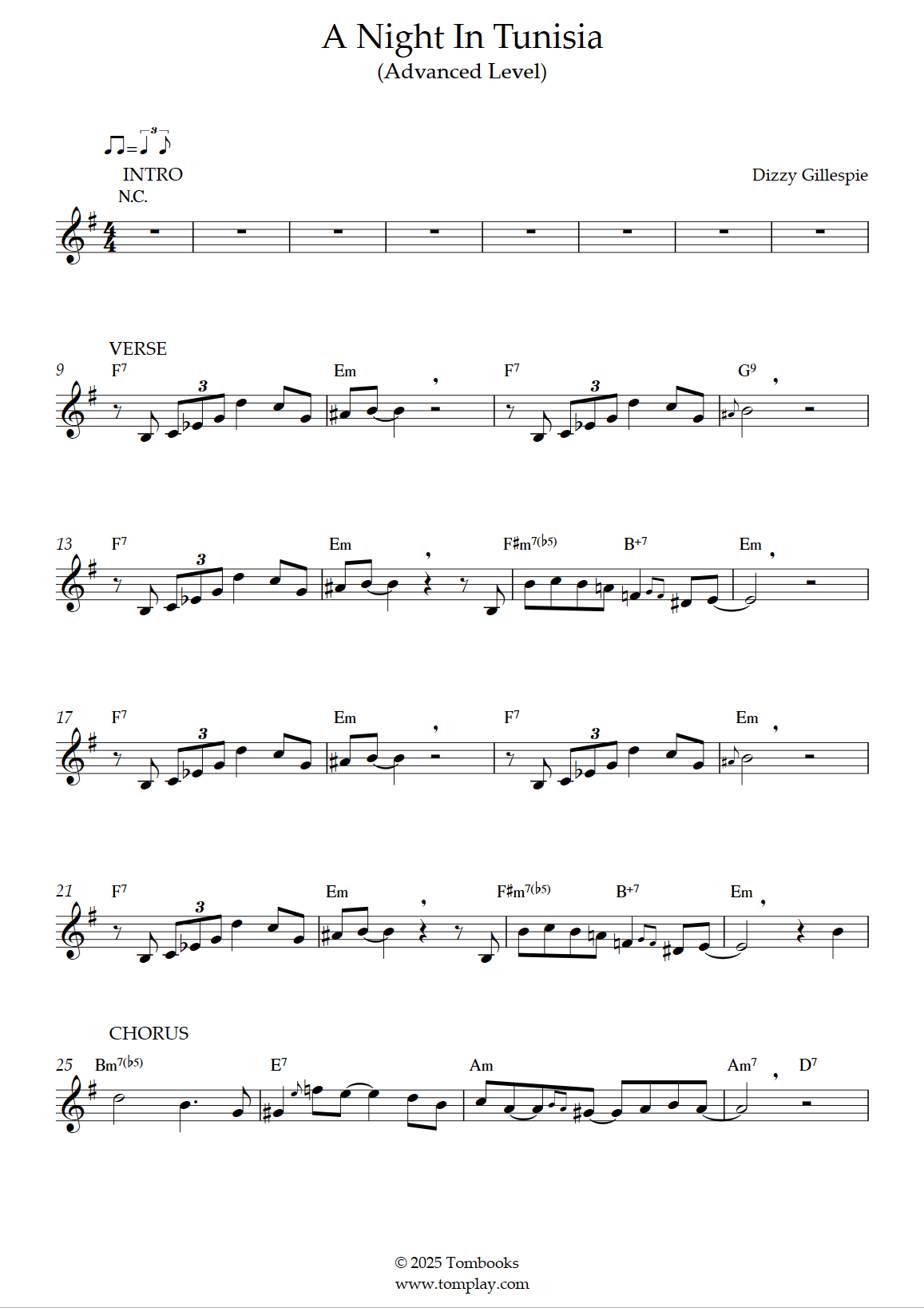 Dizzy Gillespie : A Night in Tunisia (niveau facile, sax soprano)