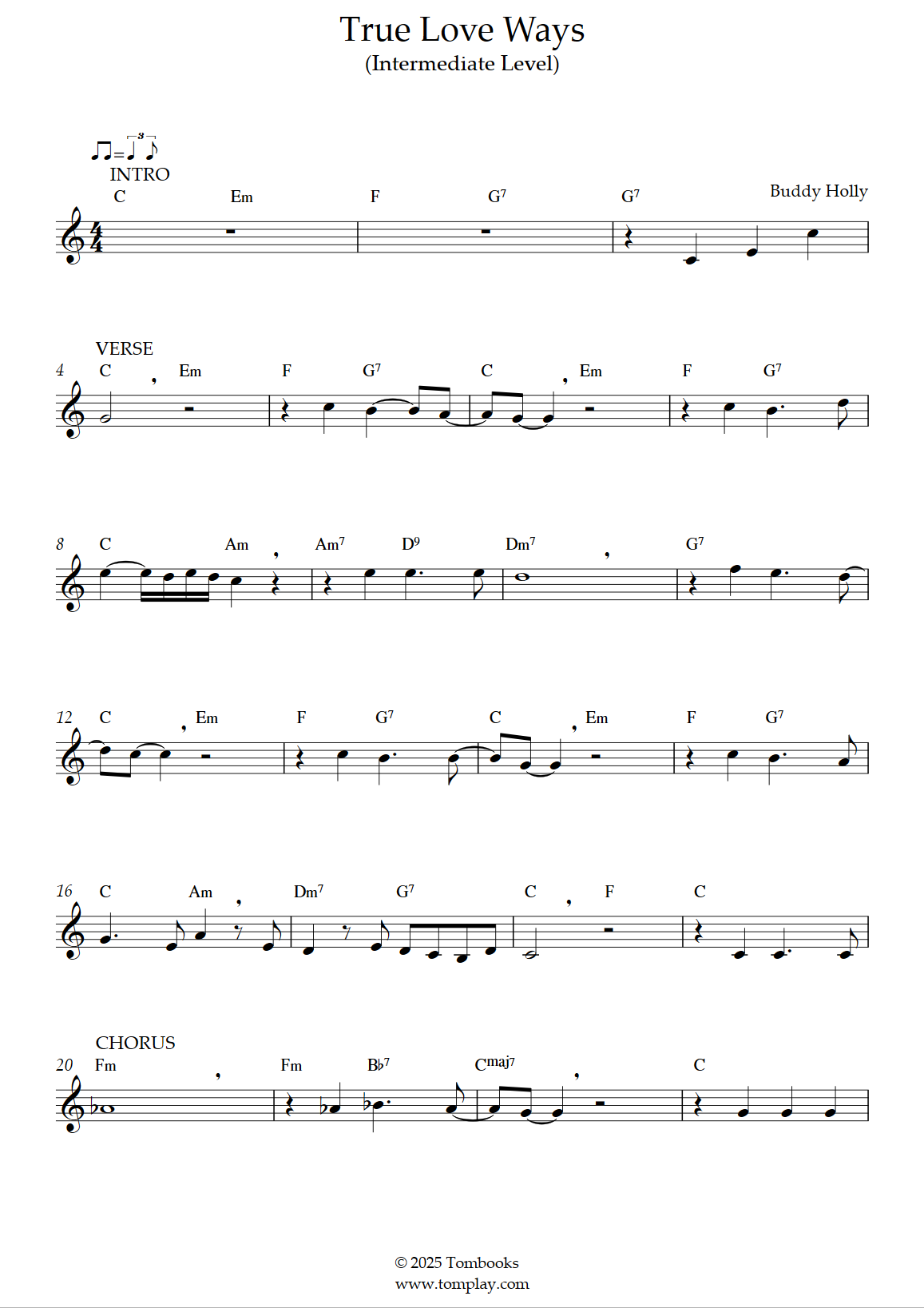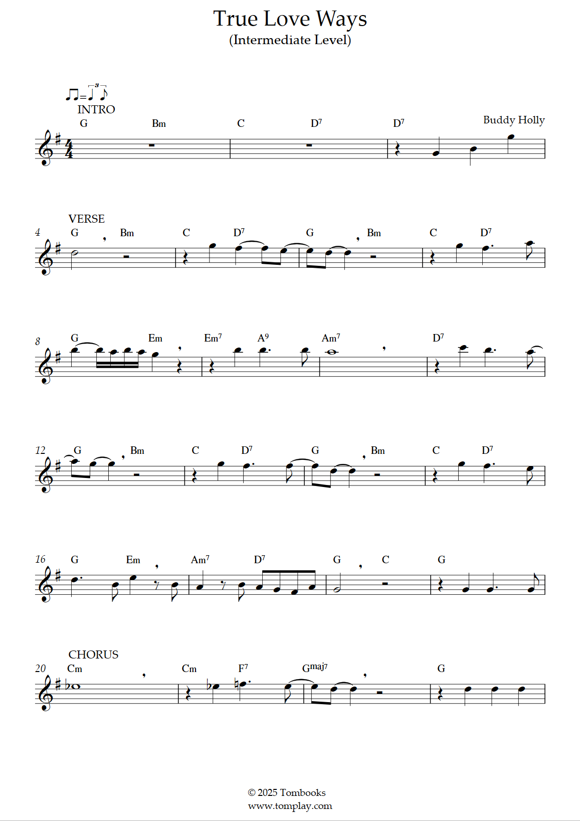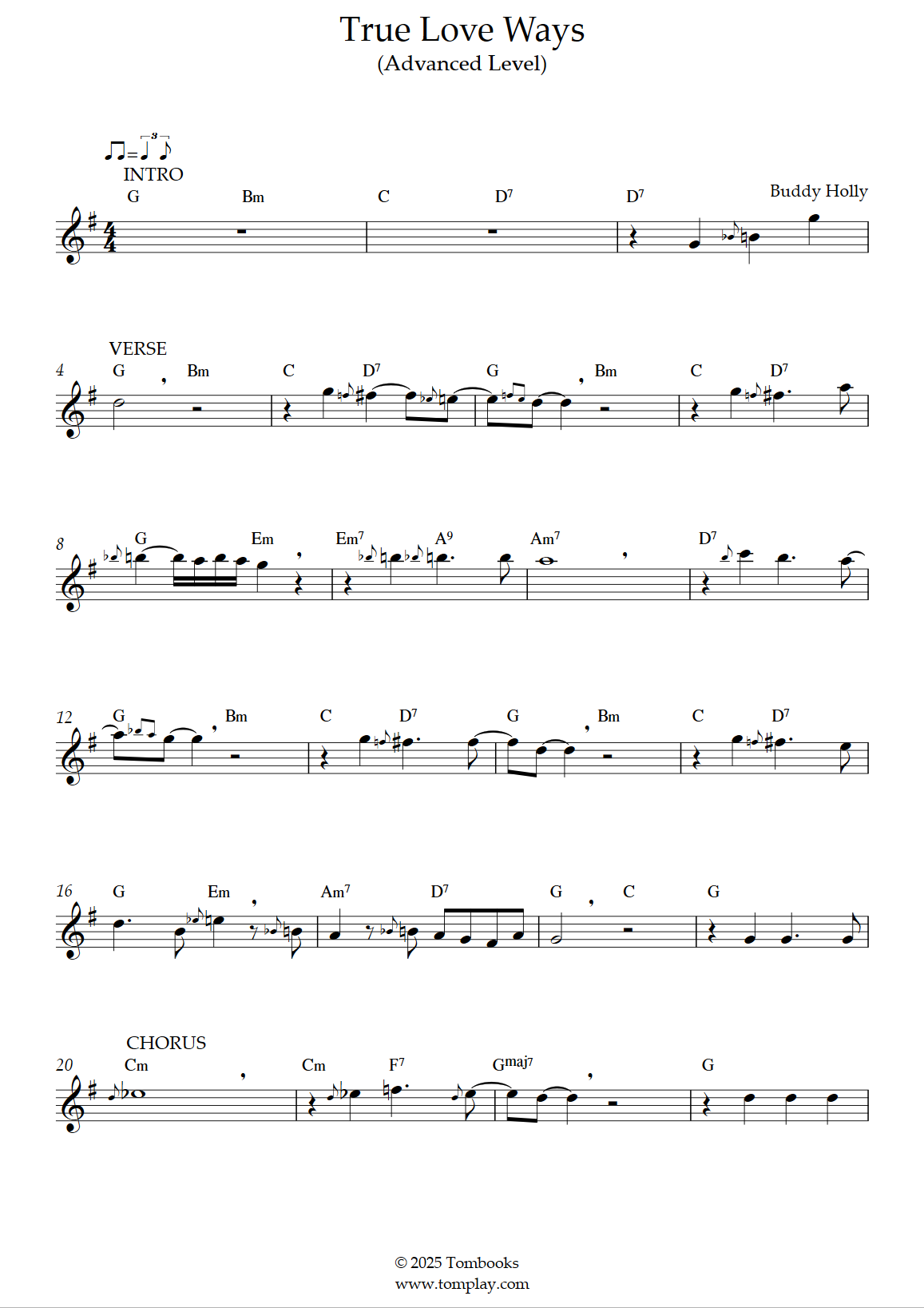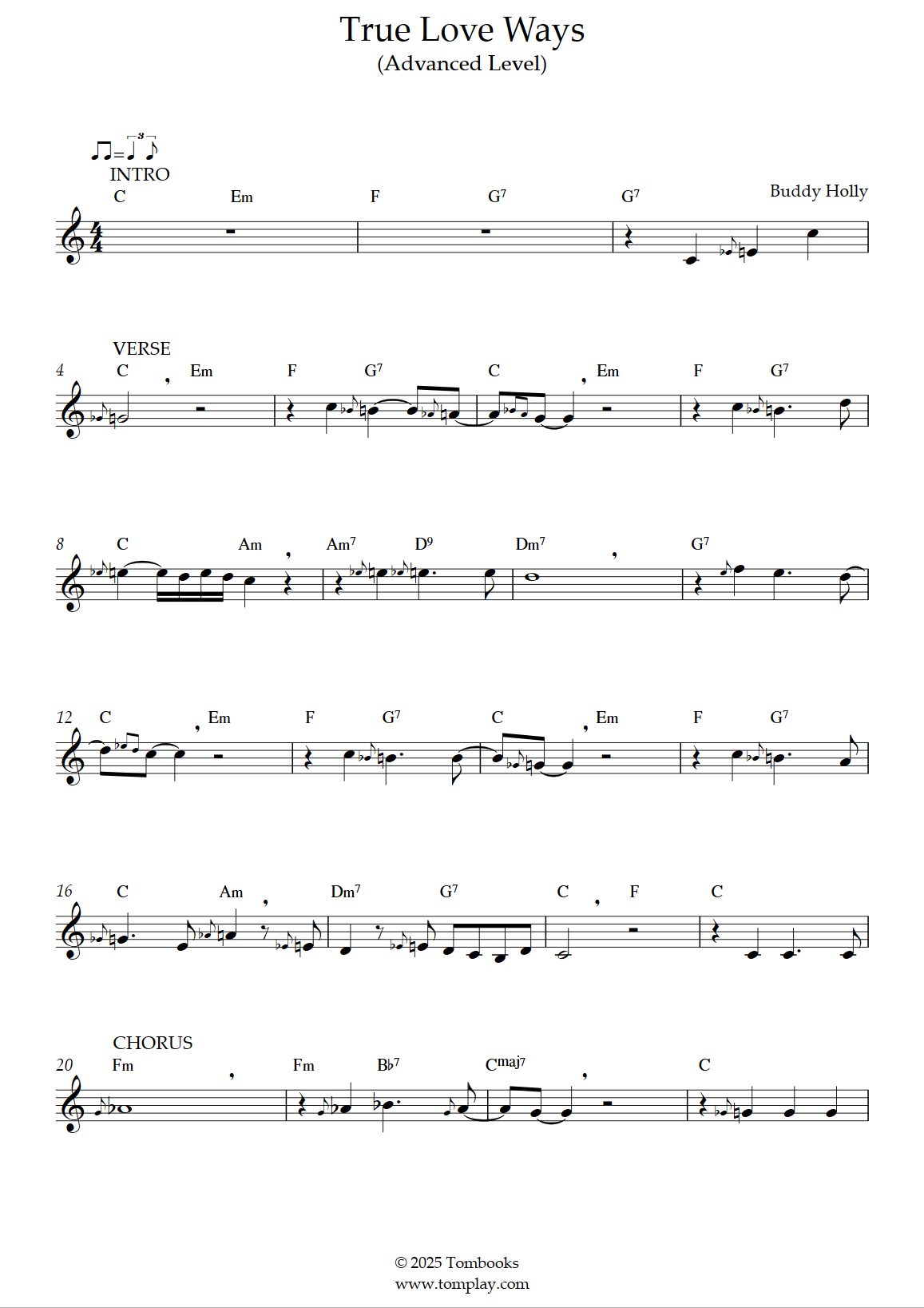 Buddy Holly : True Love Ways (niveau difficile, sax ténor)