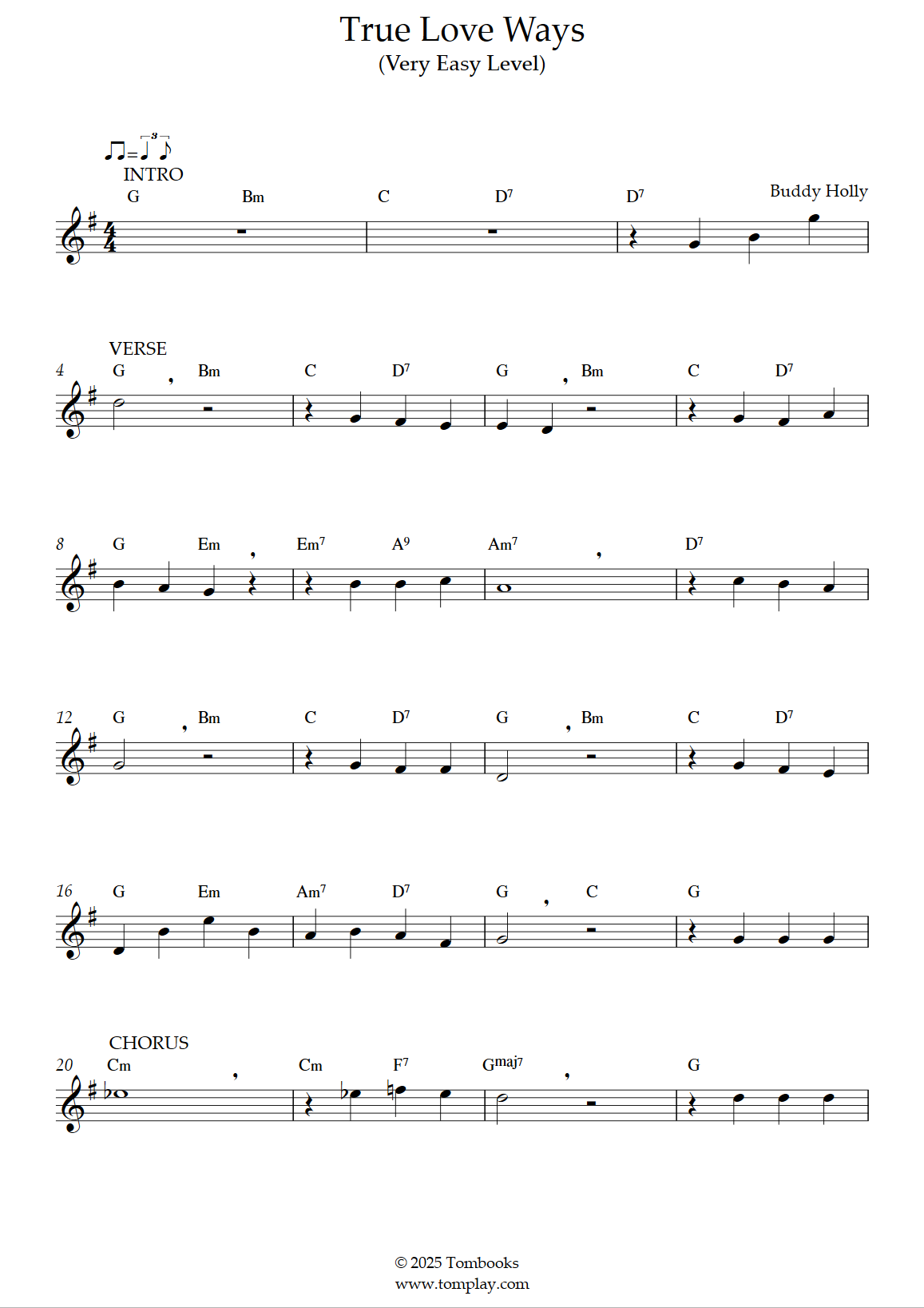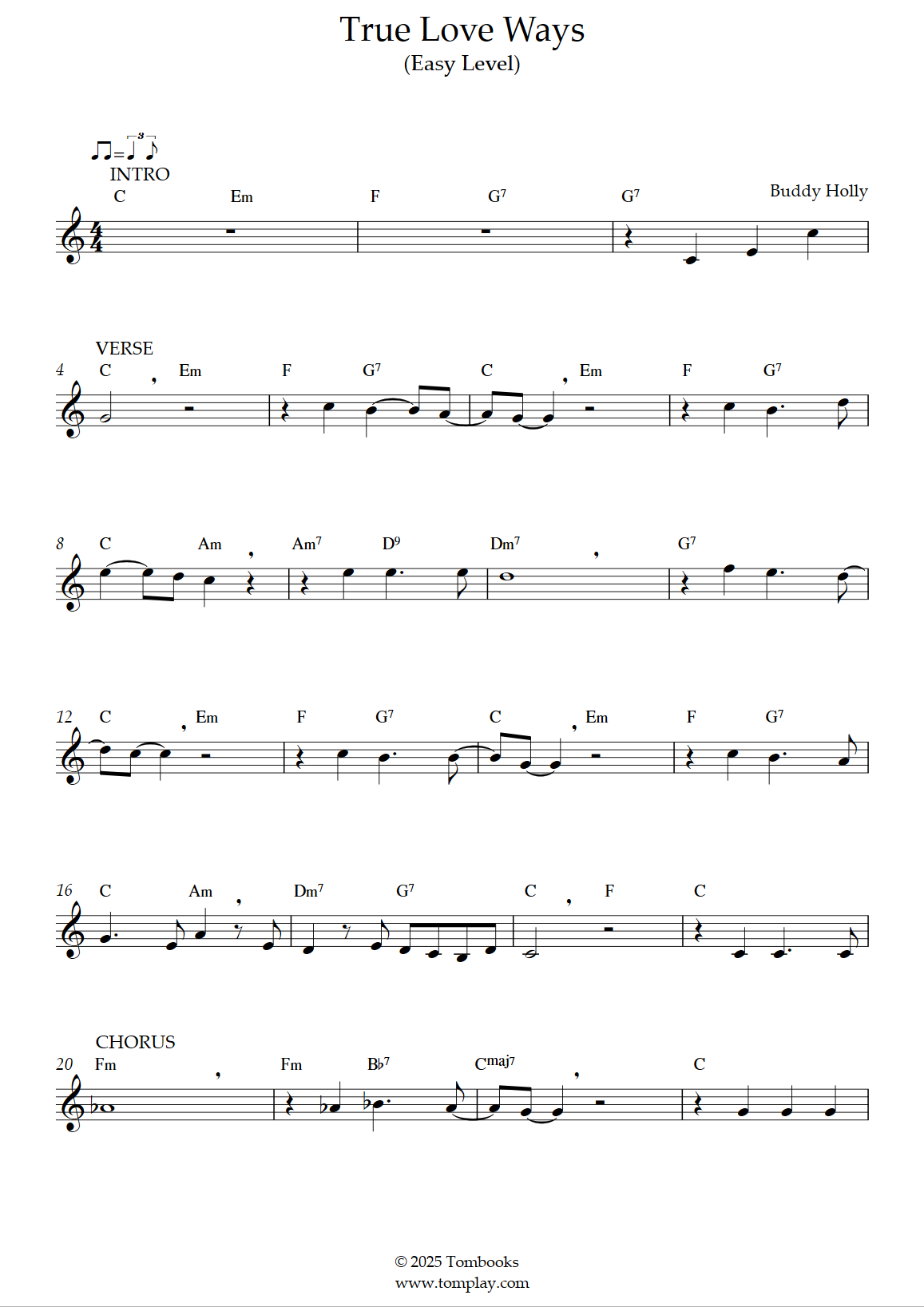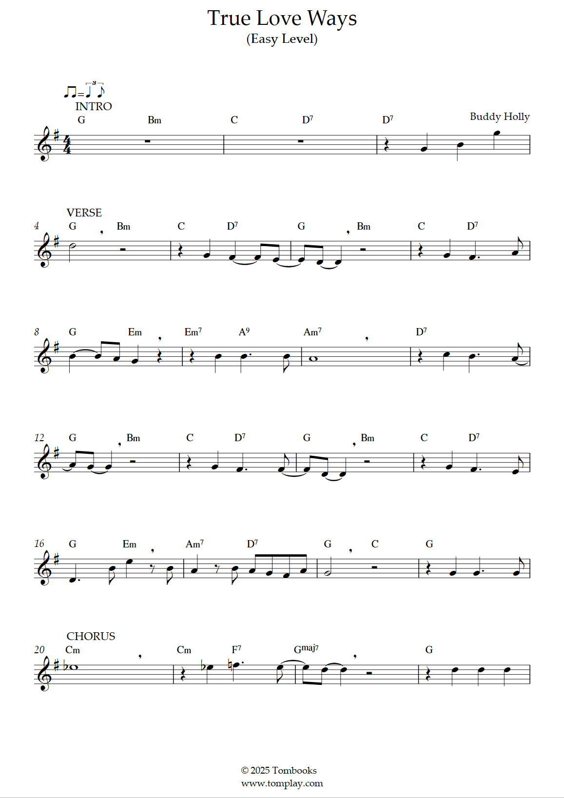 Téléchargez la partition Saxophone True Love Ways (niveau facile, sax ténor) de Buddy Holl…