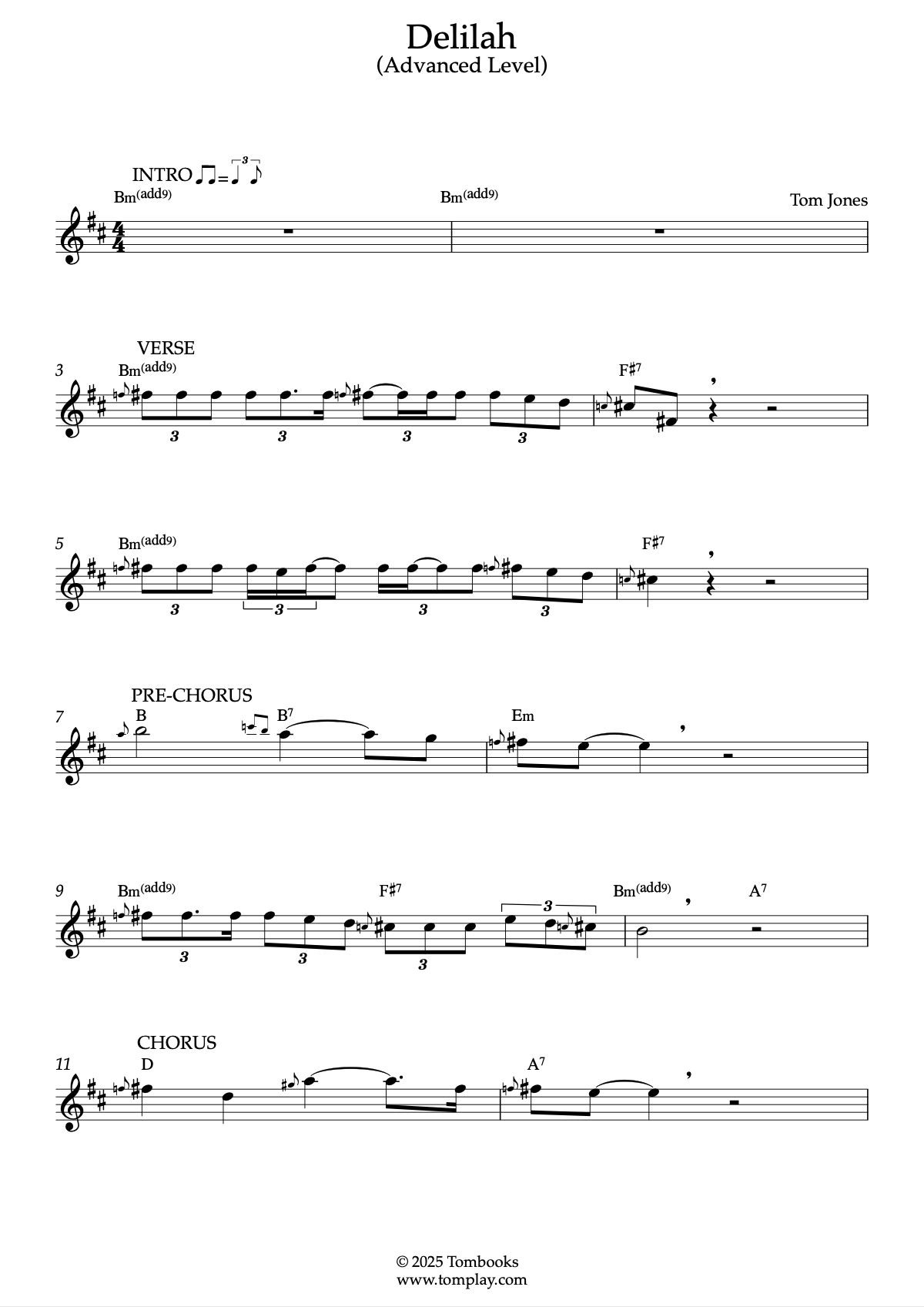 Tom Jones : Delilah (niveau difficile, sax soprano)