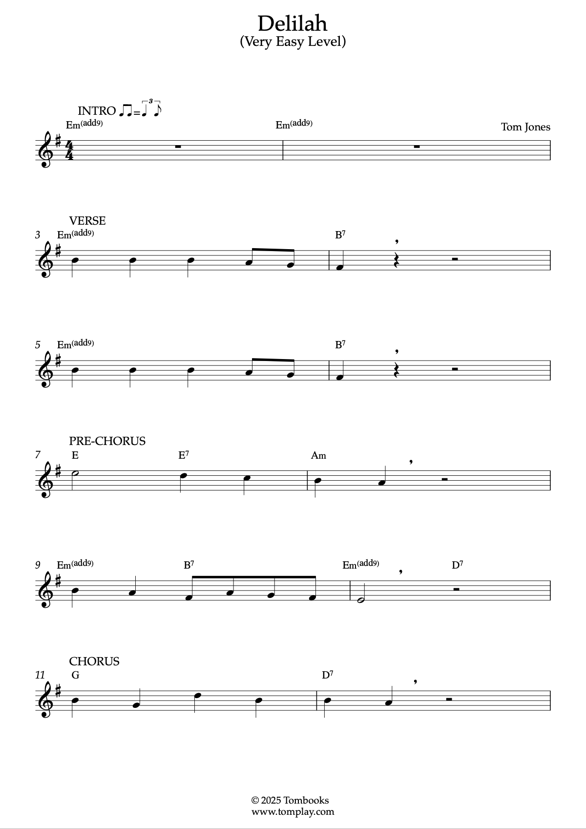 Tom Jones : Delilah (niveau très facile, sax soprano)