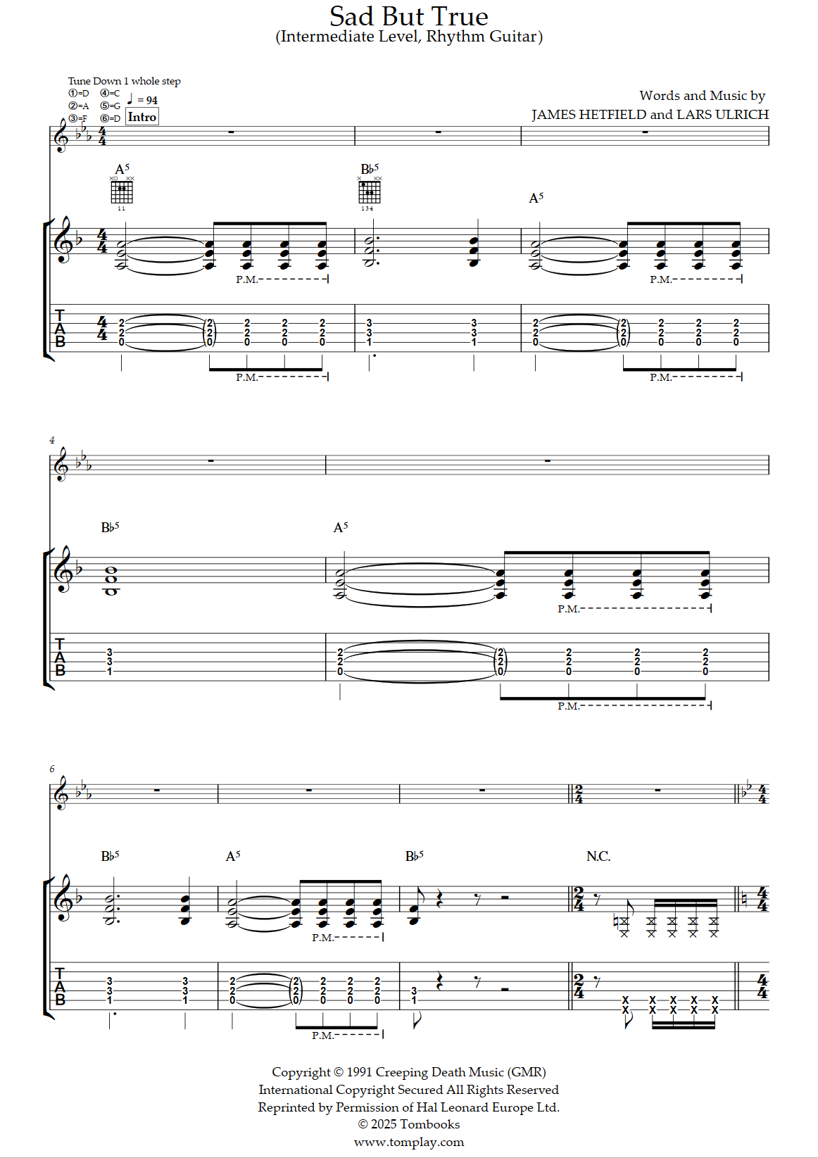Metallica : Sad but True (niveau intermédiaire, rhythm guitar)