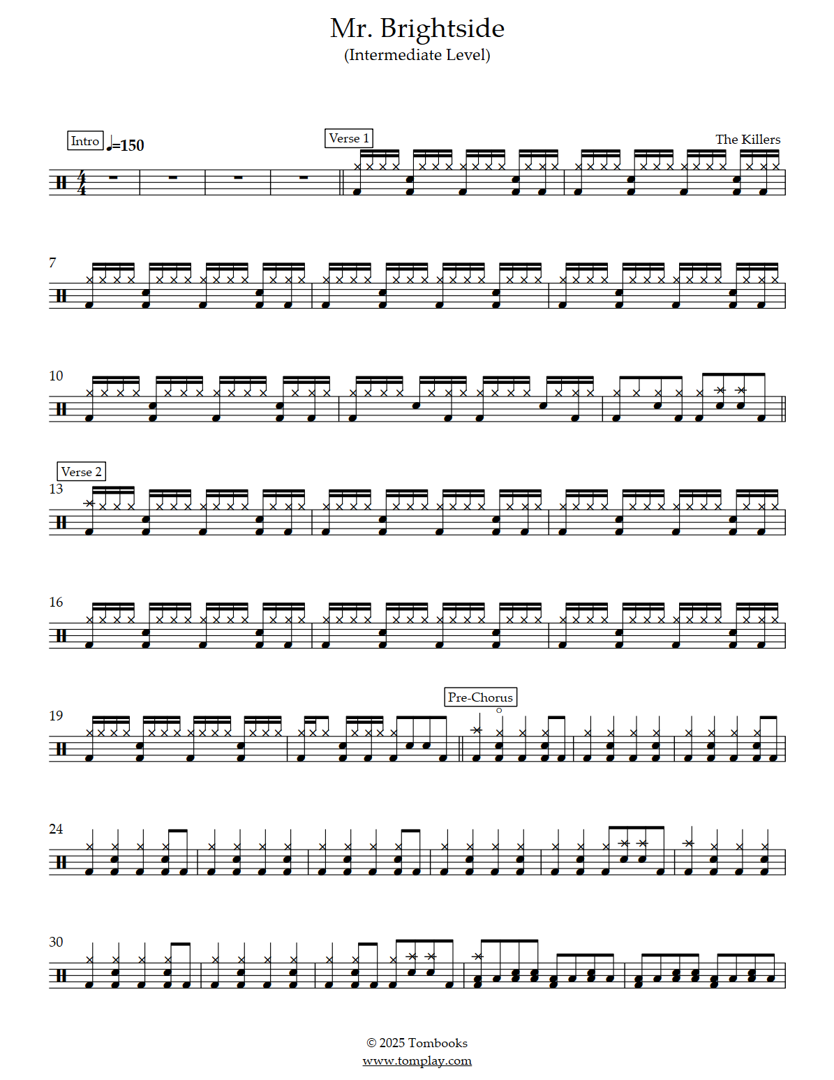 Téléchargez la partition Batterie Mr. Brightside (niveau intermédiaire) de The Killers. Pa…