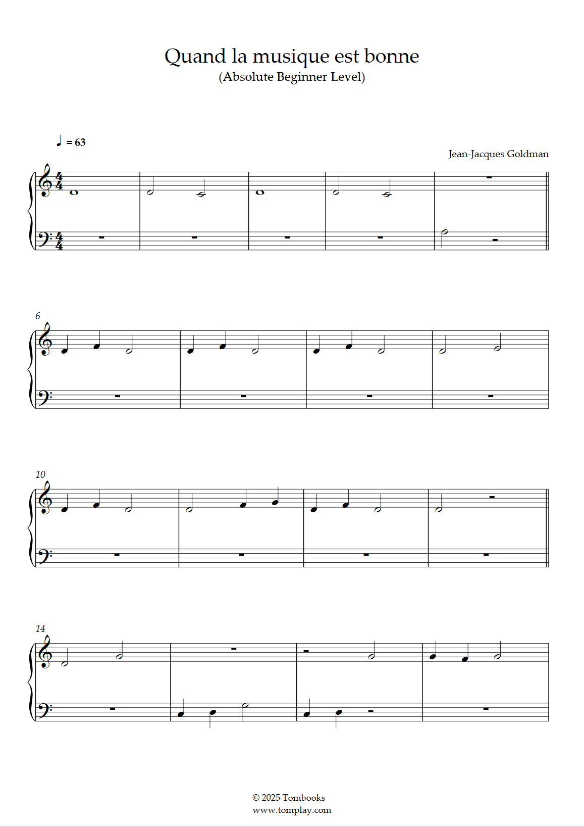 Téléchargez la partition Piano Quand la musique est bonne (niveau débutant absolu, avec or…
