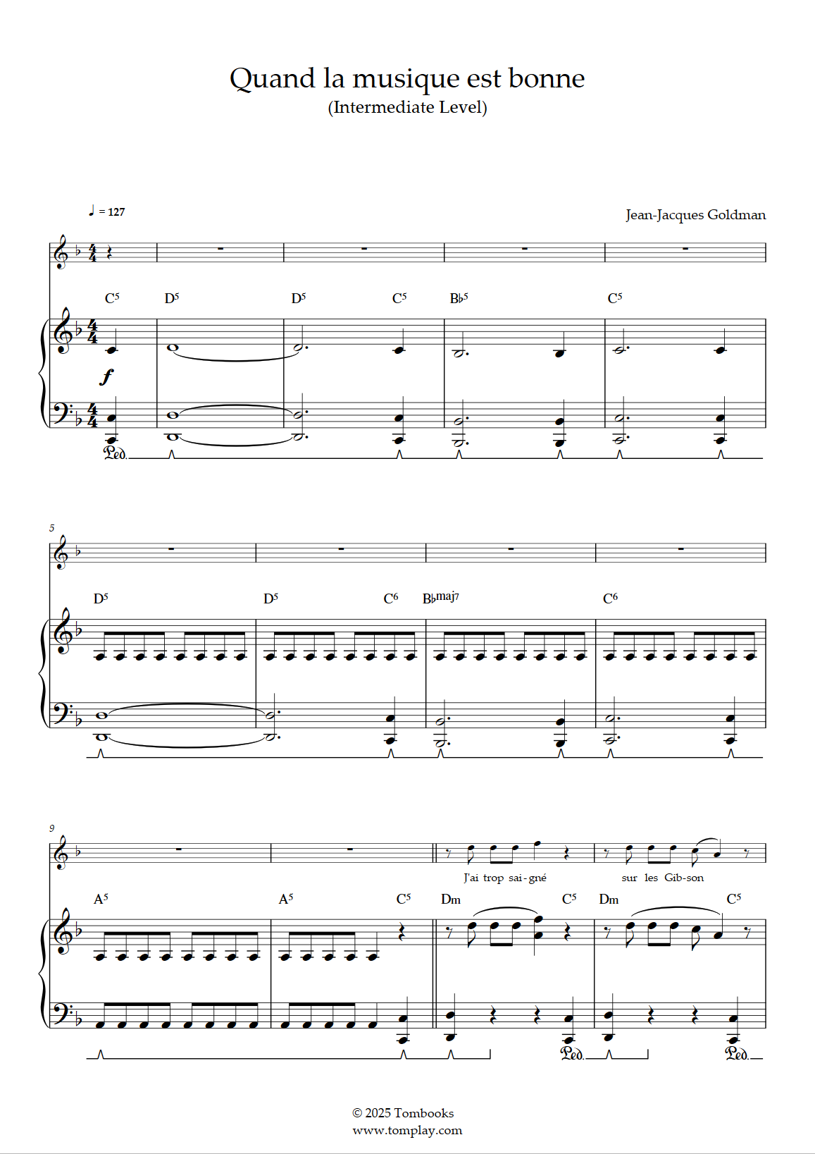 Jean Jacques Goldman : Quand la musique est bonne (niveau intermédiaire, avec orchestre)