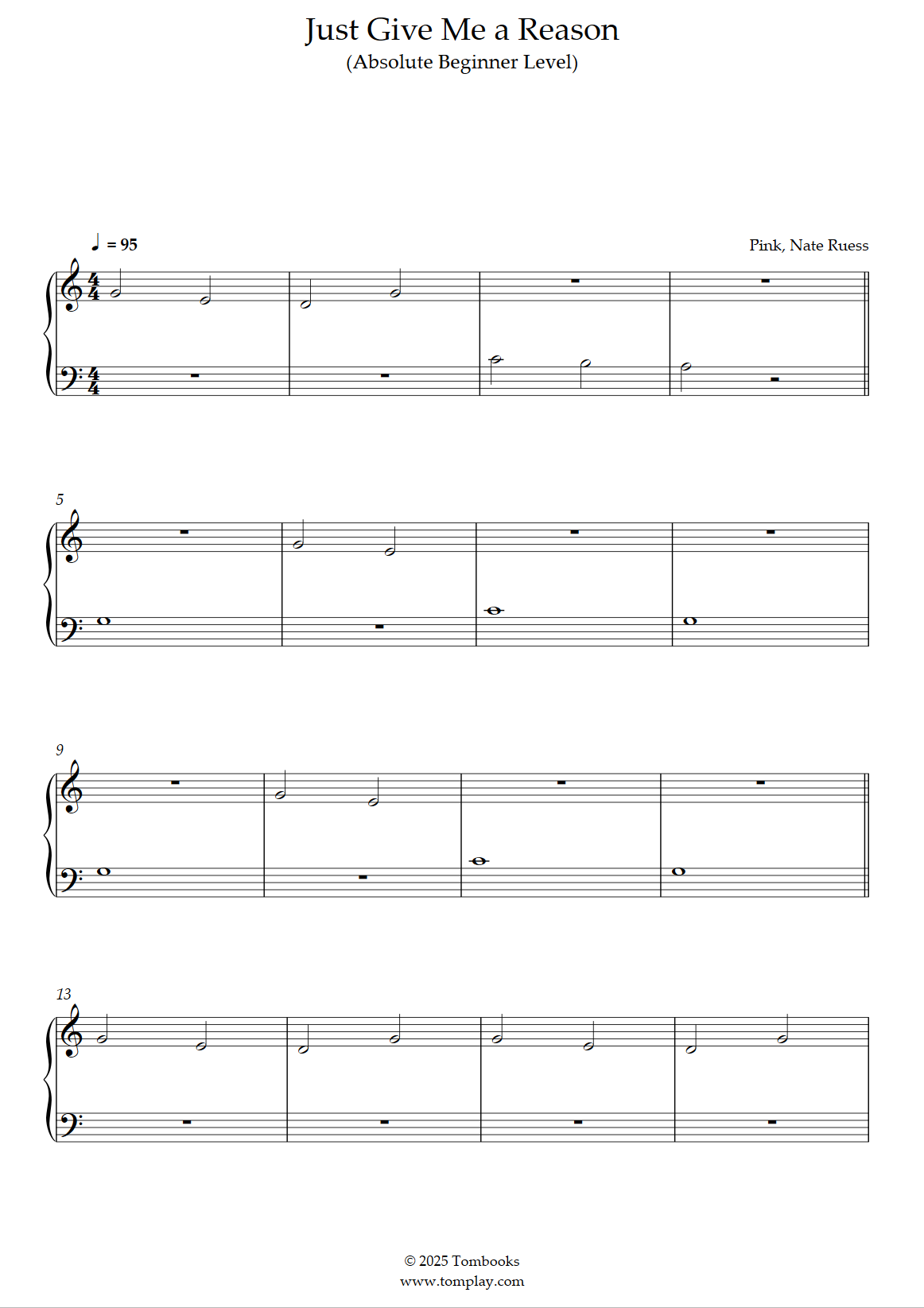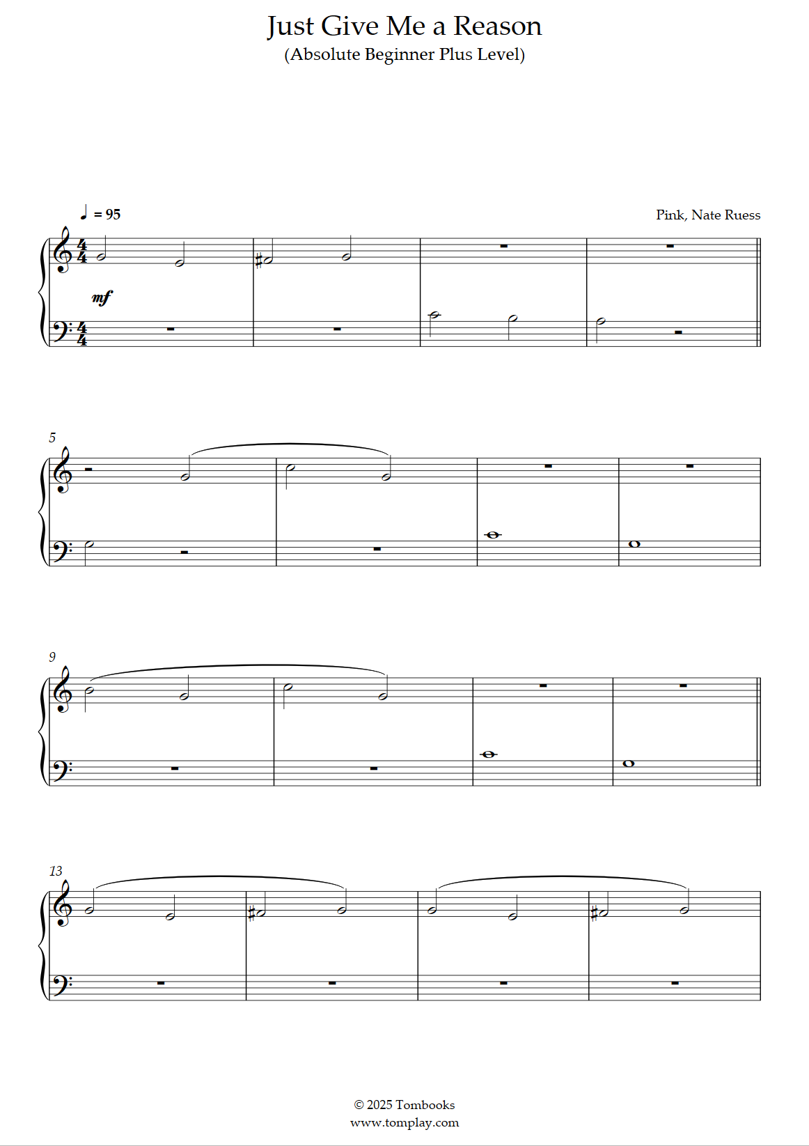 Téléchargez la partition Piano Just Give Me a Reason (niveau facile, piano solo) de Nate R…