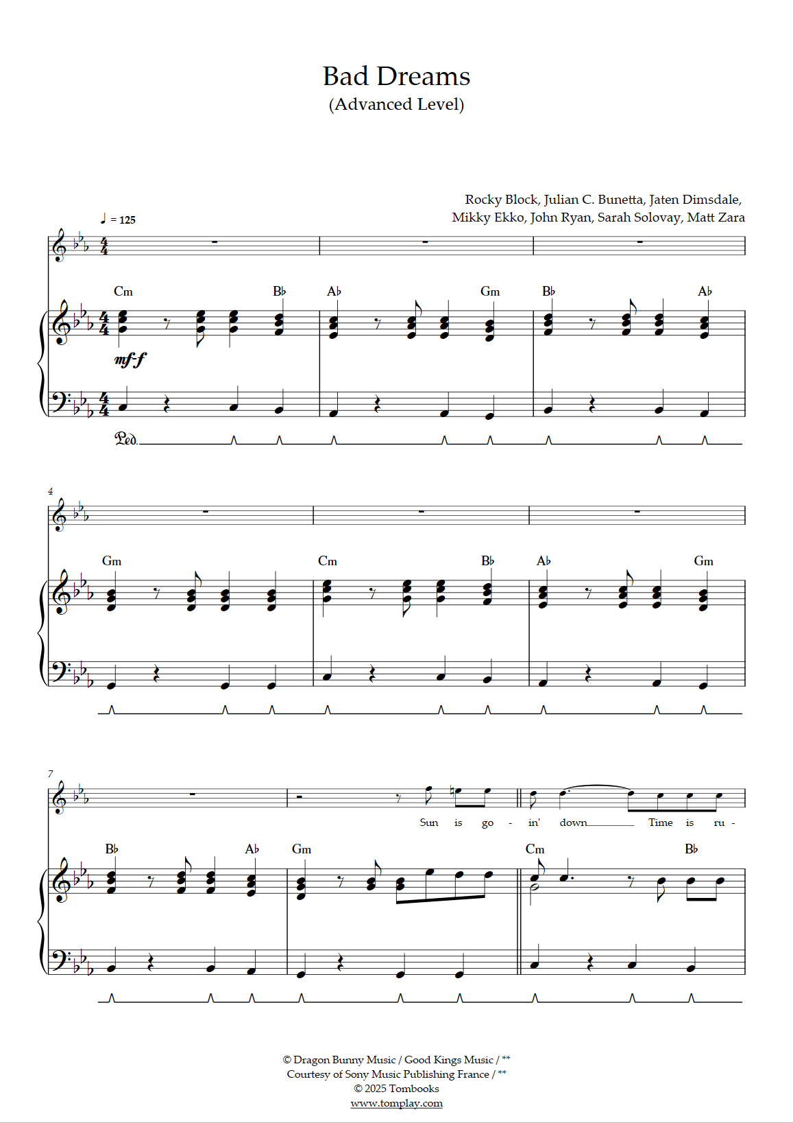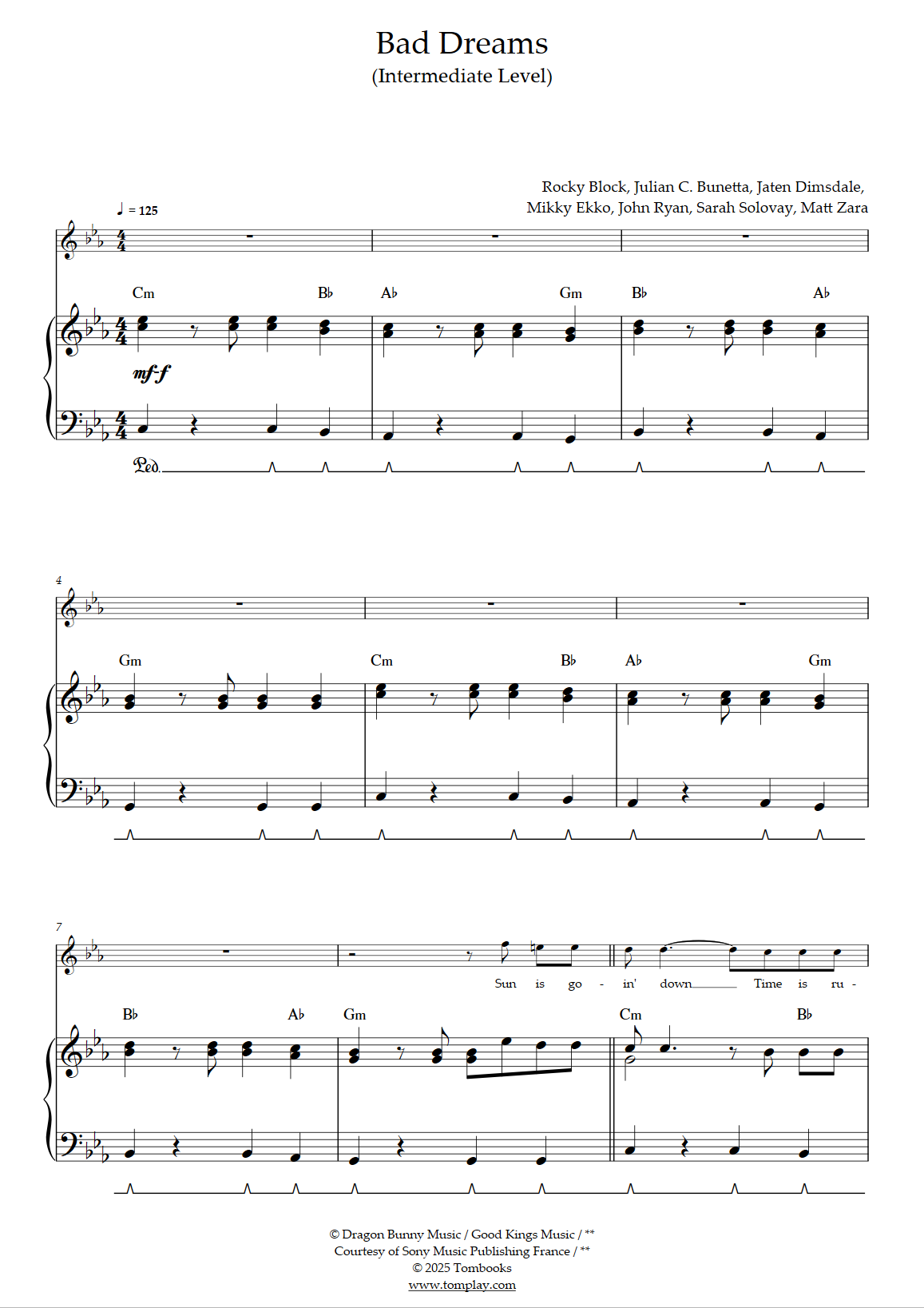 Téléchargez la partition Piano Bad Dreams (niveau intermédiaire, avec orchestre) de Teddy …