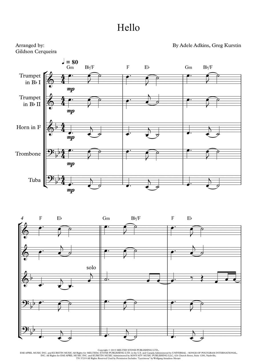 Woodwind Ensemble,Woodwind Quintet Bassoon,Clarinet,Flute,Horn,Oboe - Level 1 - Digital Download SKU: A0.1385687 By Adele. By Adele Adkins and Dan Wilson. Arranged by Jhonatan Lucio Viana. 21st Century,Holiday,Pop,R & B,Thriller. 16 pages. JLVPartitura #969624. Published by JLVPartitura (A0.1385687). Immerse yourself in this arrangement of Someone Like You by Adele for Woodwind Quintet (Flute, Oboe, Clarinet in Bb, Horn in F and Bassoon). Key Features: 1) Adaptation smooth transition to your instrument, preserving the original music's magic and emotion; 2) Level Intermediate, suitable for those starting out or at an easy intermediate level; 3) Format professionally edited PDF for effortless study and performance; 4) Genre blends classical elements with whimsical touches, appealing to both adults and children; 5) Melody simple yet enchanting, evoking wonder and curiosity; 6) Key Ab Major.Unlock the transformative power of music in your life! Purchase the sheet music today and immerse yourself in the beauty of this composition. Elevate your musical experience with every note of this carefully crafted arrangement. Don't hesitate any longer, embark on this unique musical journey and enrich your life with every chord.I'm happy to share this exclusive arrangement to enrich your musical journey. After purchasing the sheet music of your choice, I invite you to explore my extensive collection, accessible on the website under my name: Jhonatan Lucio Viana. Discover a variety of meticulously crafted arrangements for various instruments and voices, all at affordable prices.