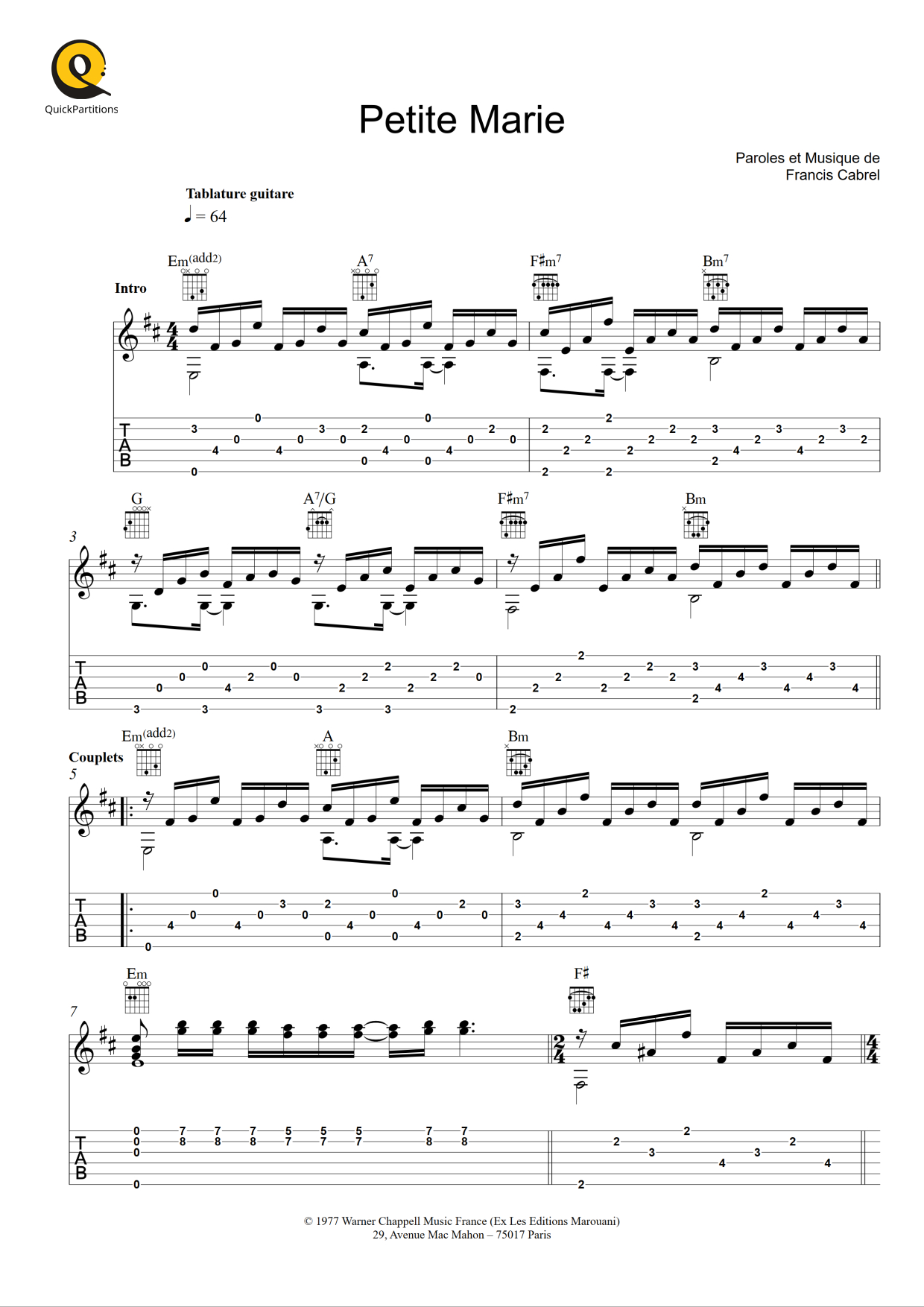 Guitar - Level 3 - Digital Download SKU: A0.1030517 Composed by Francisco Tárrega (1852-1909). Arranged by Vicente Bergamo. Concert,Romantic Period,Standards,World. Guitar Tab. 2 pages. Vicente Bergamo #6385363. Published by Vicente Bergamo (A0.1030517). Lágrima, prelude for classical guitar by Francisco Tárrega (published in 1891). Arranged by Vicente Bergamo. A beautiful and easy piece for intermediate level. Includes tablature (TAB) to facilitate you study. A must have classical for all musicians! Perfect for solo concerts, auditions, and more. .