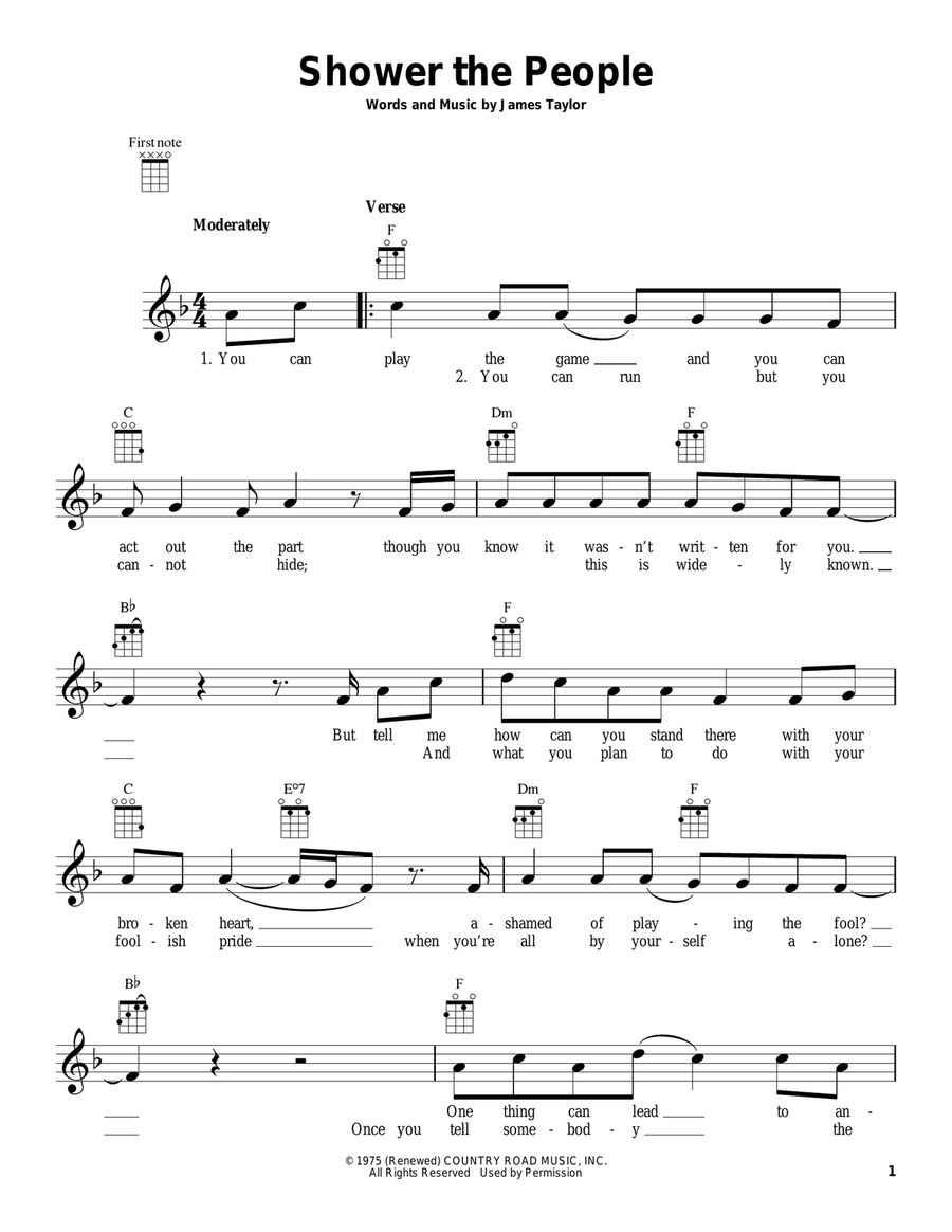 Ukulele - Level 1 - Digital Download SKU: A0.1510383 By James Taylor. By James Taylor and Stephen Foster. Arranged by Kee Kai. 19th Century,A Cappella,Children,Country,Folk. Score. 2 pages. KeeKai #1085576. Published by KeeKai (A0.1510383). One of the most famous American Folks tune that written in the middle of 19th century. Now in simple ukulele.