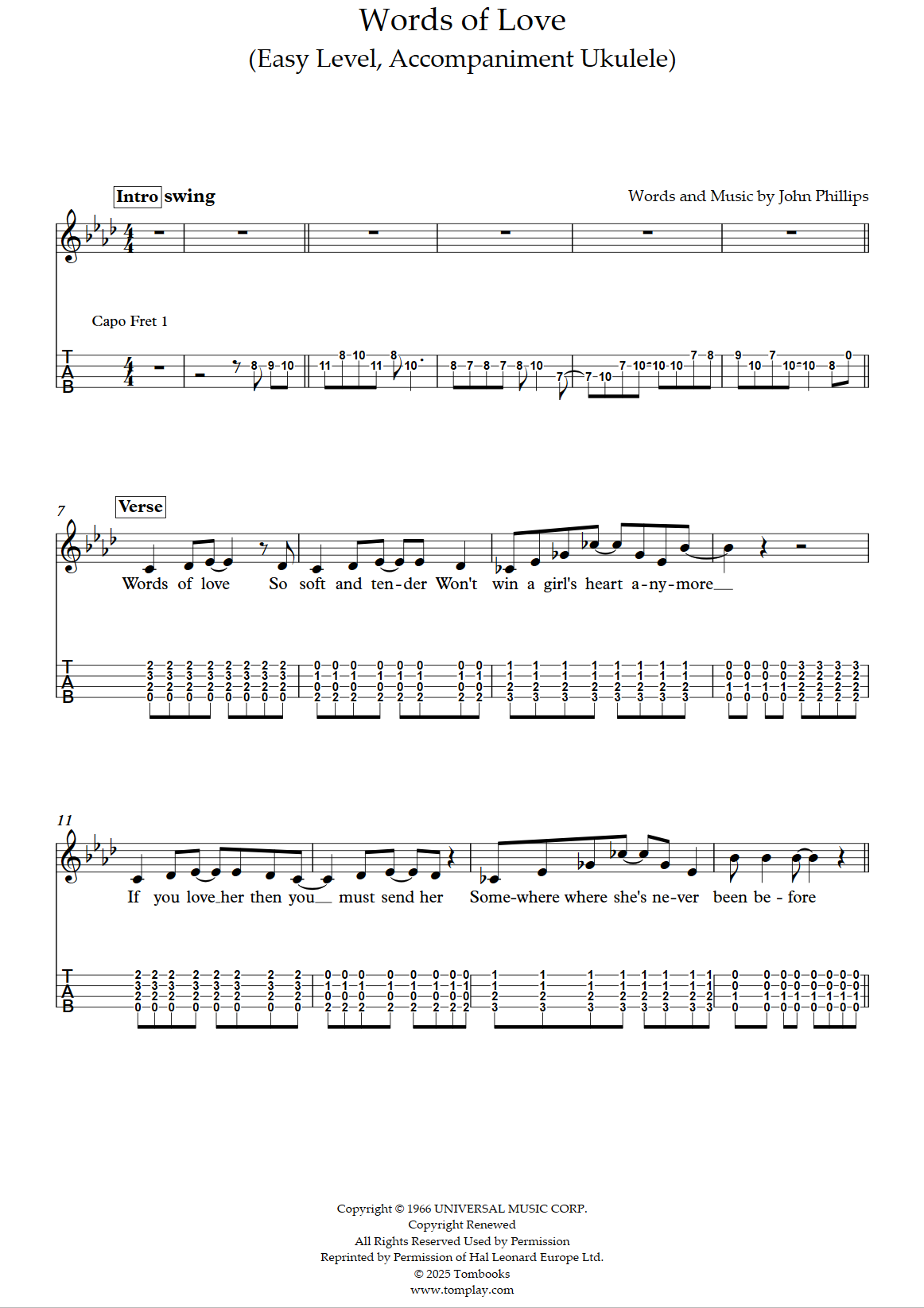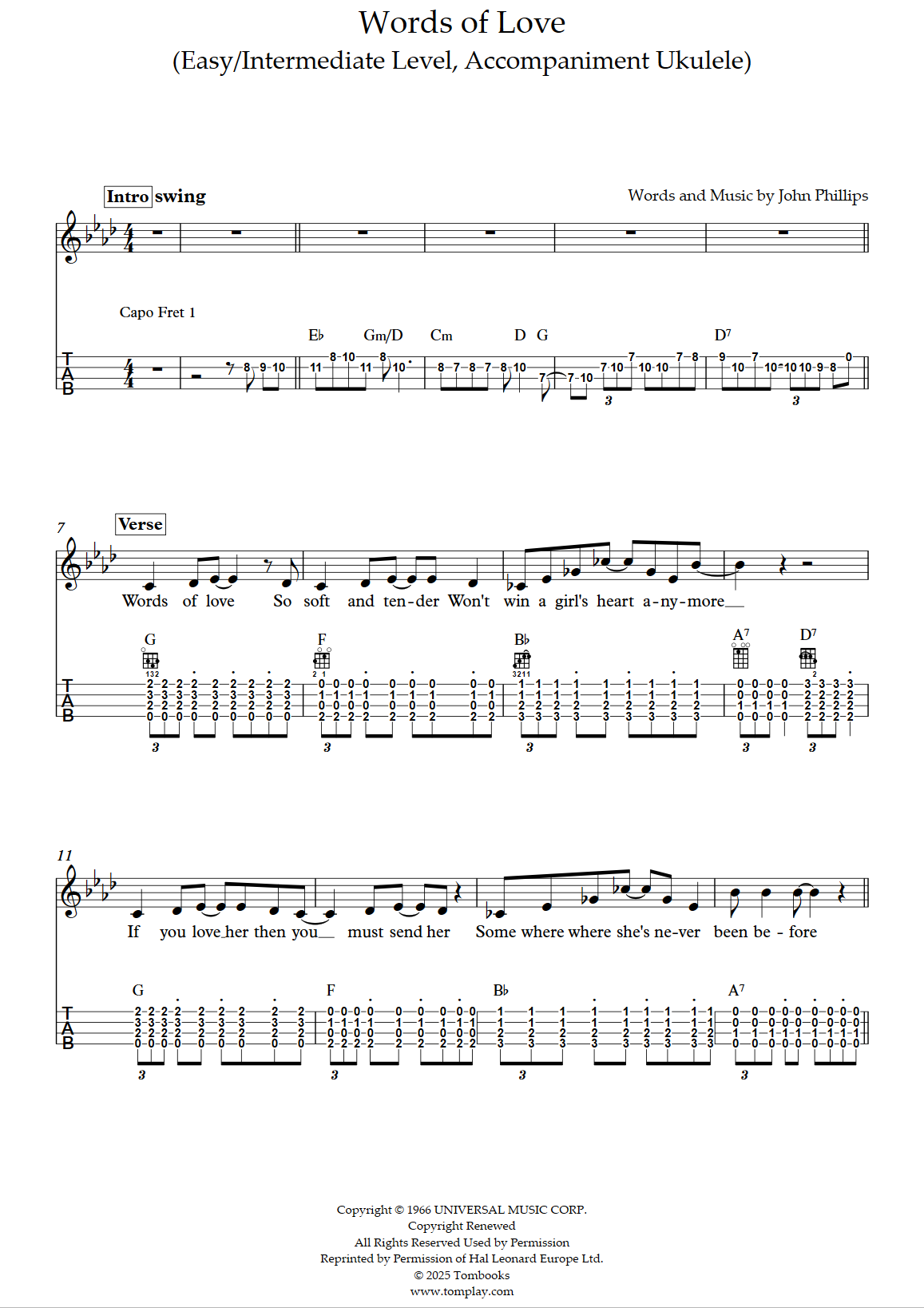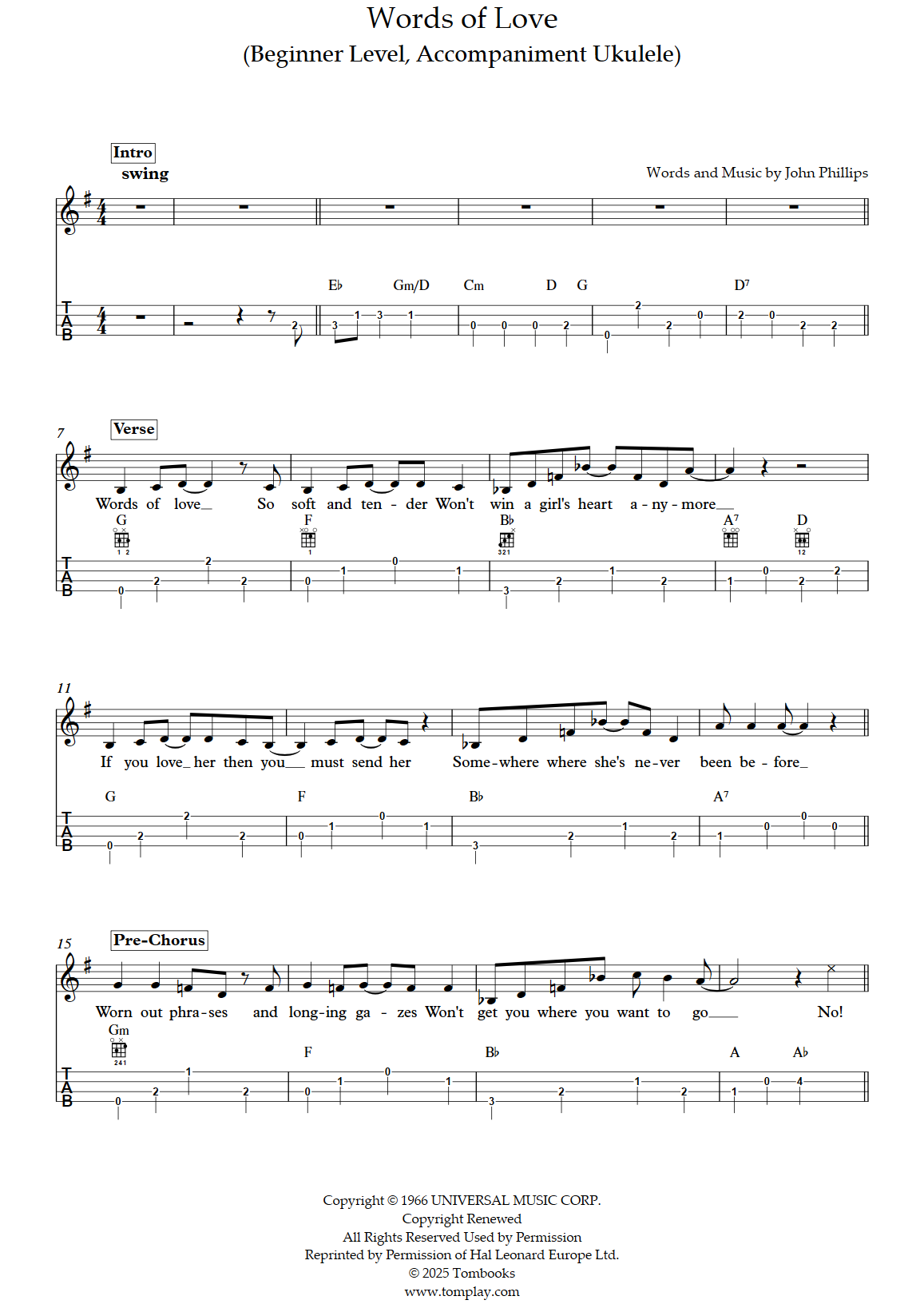 Téléchargez la partition Ukulélé Words of Love (niveau facile/intermédiaire, ukulélé d'acc…