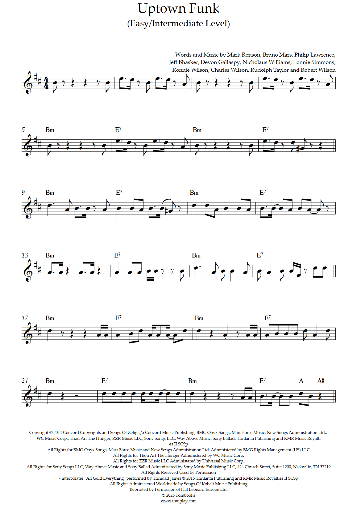 Téléchargez la partition Saxophone Uptown Funk (niveau difficile, sax alto) …