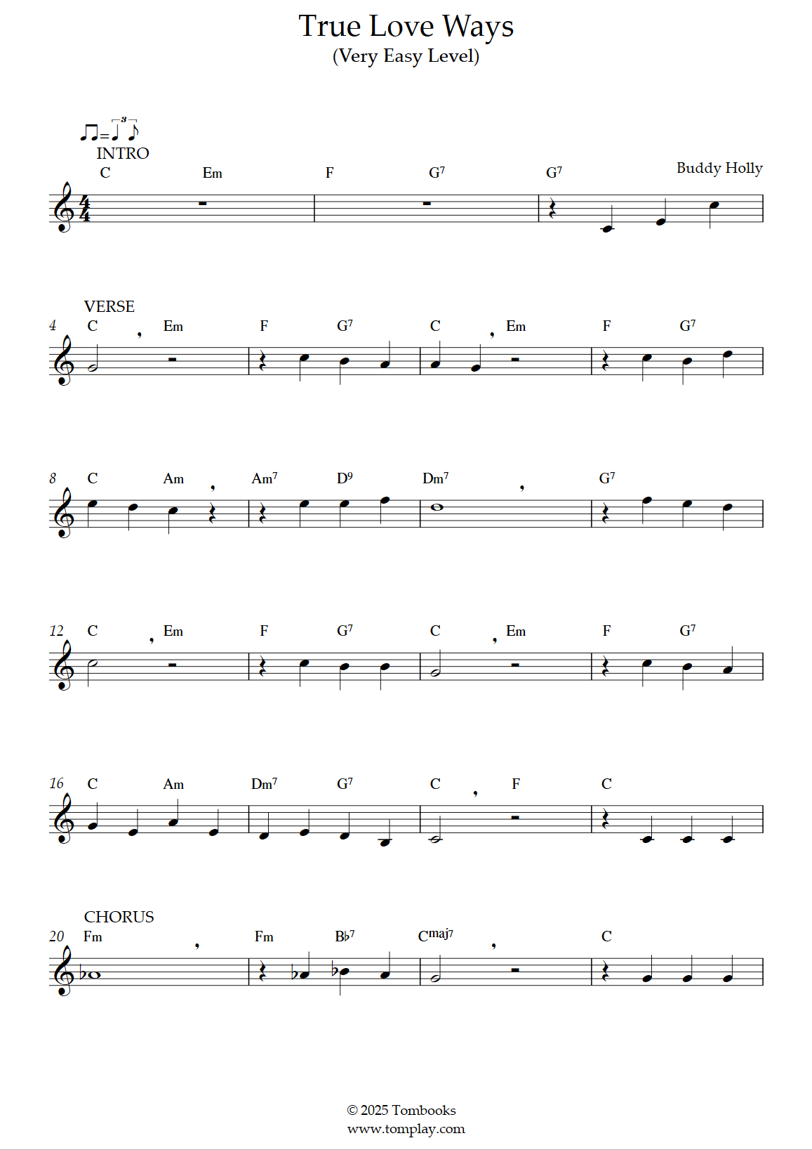 Téléchargez la partition Saxophone True Love Ways (niveau facile, sax ténor) de Buddy Holl…