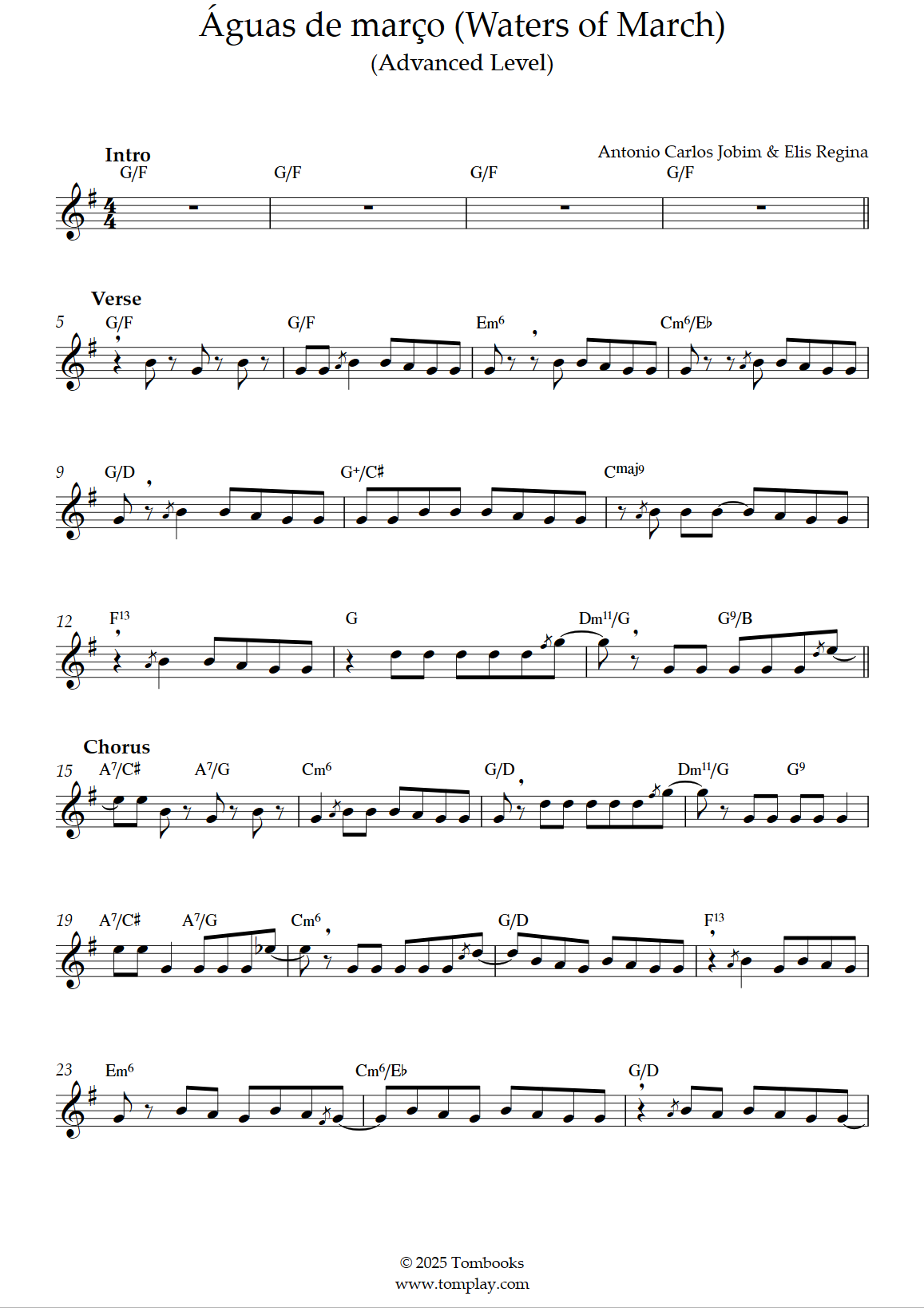 Antônio Carlos Jobim,Elis Regina : Águas de março (Waters of March) (niveau difficile, sax ténor)