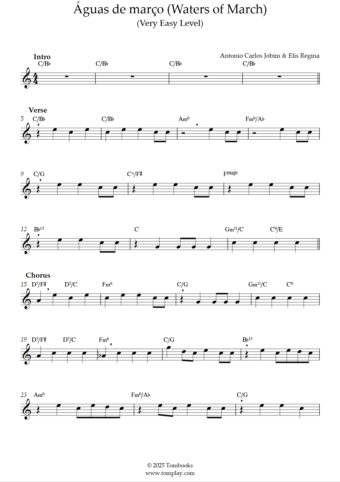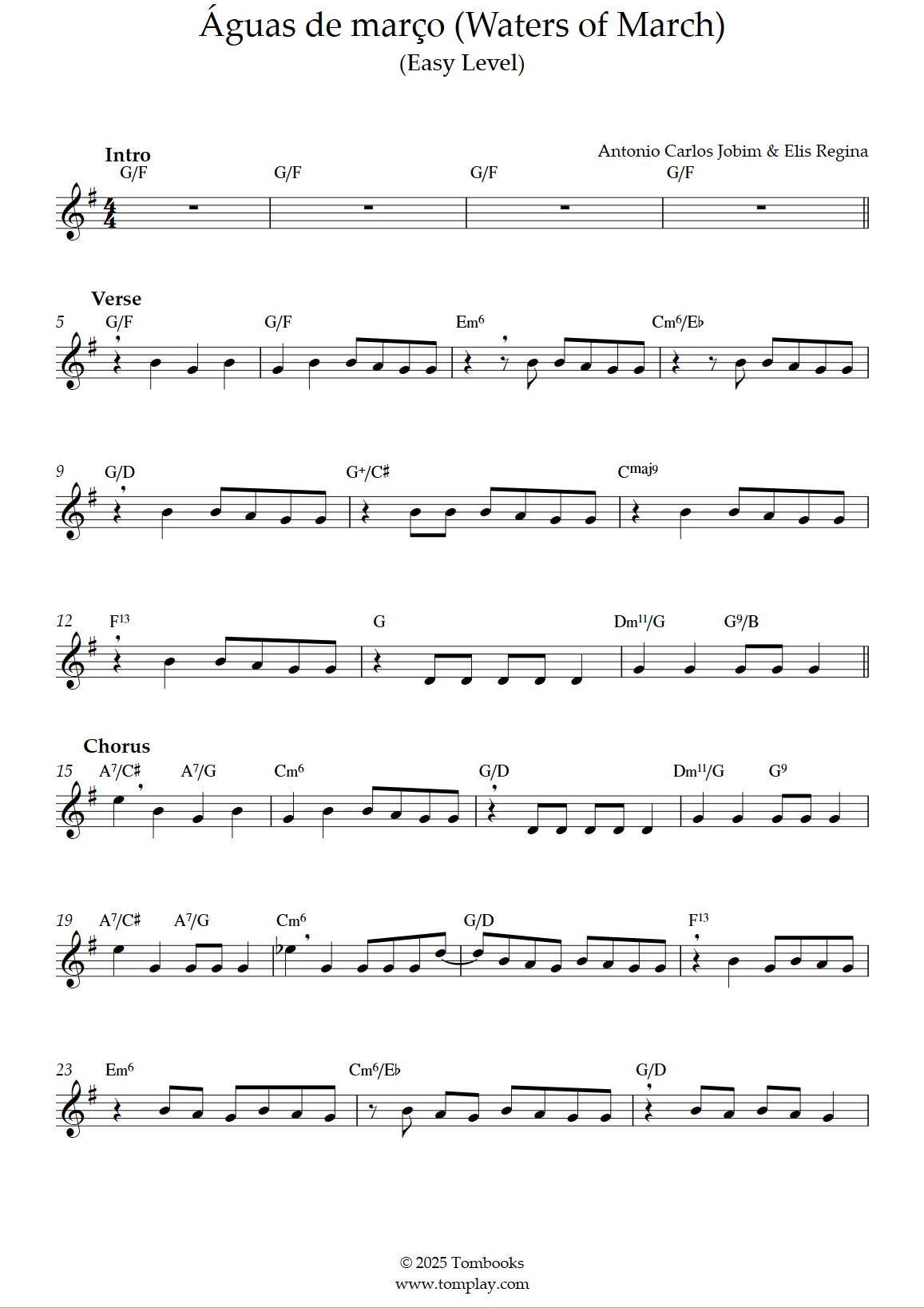 Antônio Carlos Jobim,Elis Regina : Águas de março (Waters of March) (niveau intermédiaire, sax ténor)