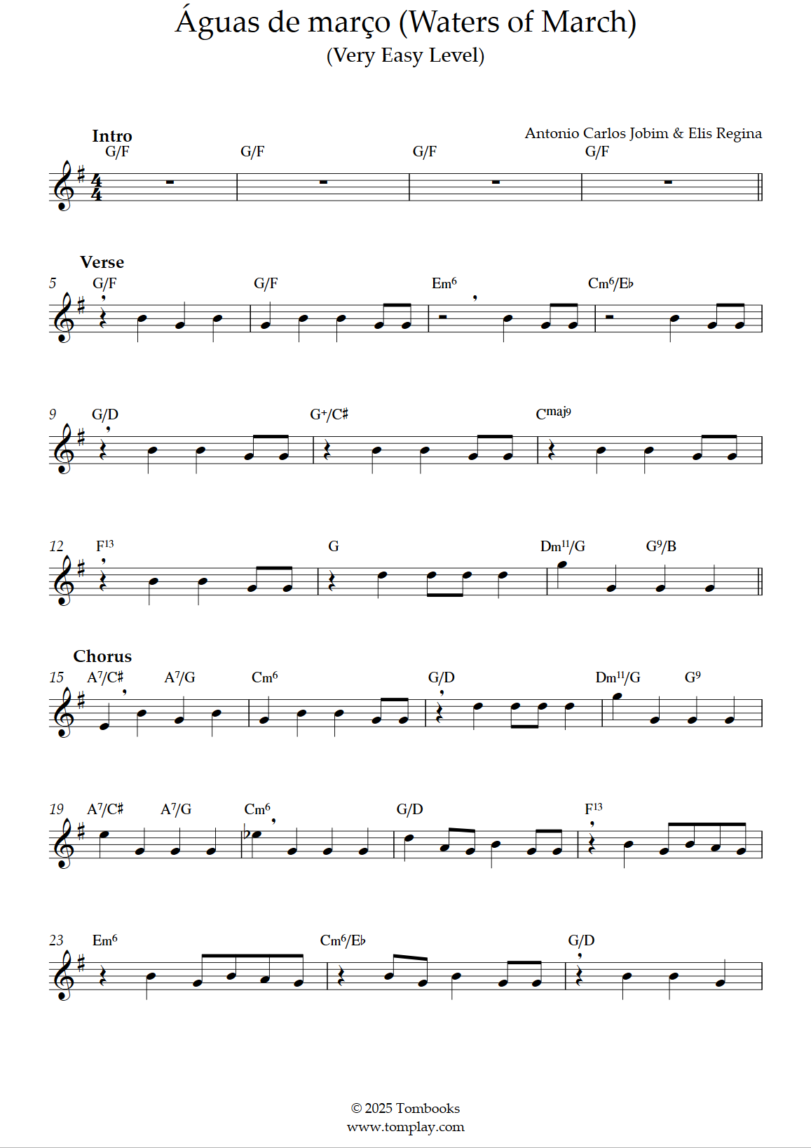 Antônio Carlos Jobim,Elis Regina : Águas de março (Waters of March) (niveau très facile, sax ténor)
