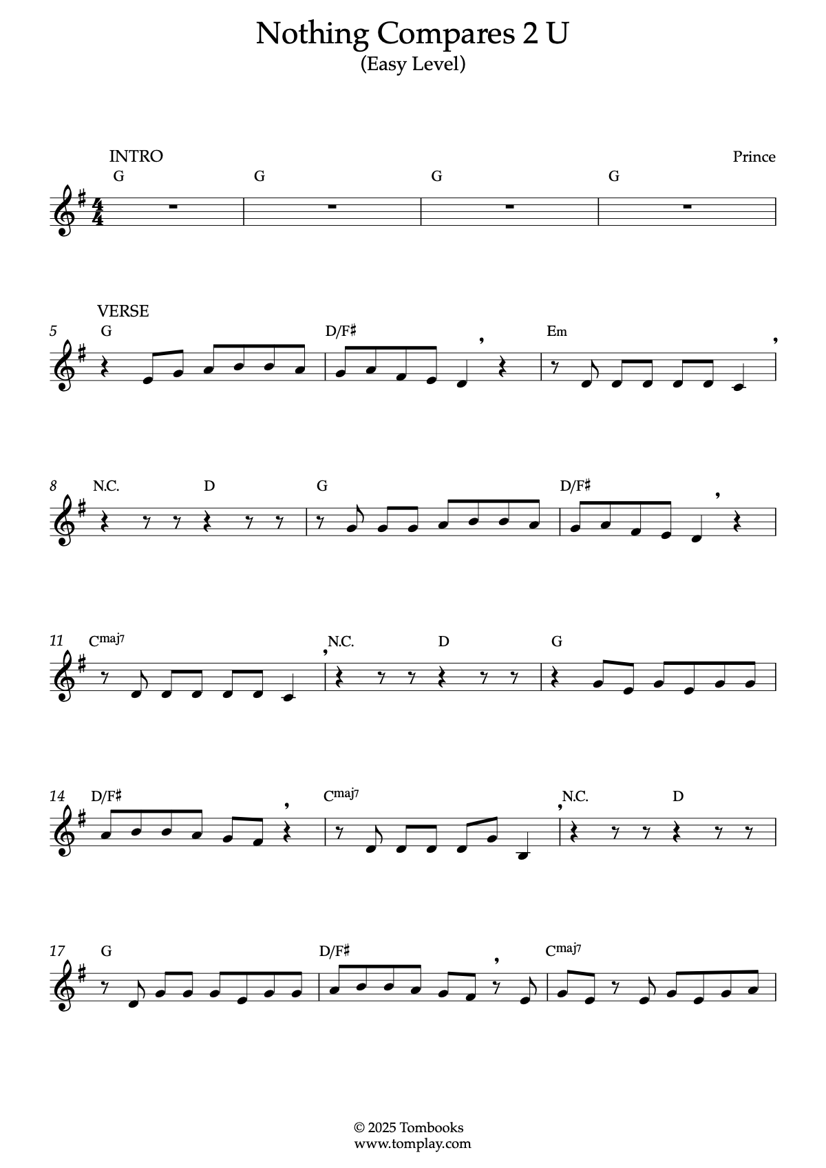 Prince : Nothing Compares 2 U (niveau très facile, sax ténor)
