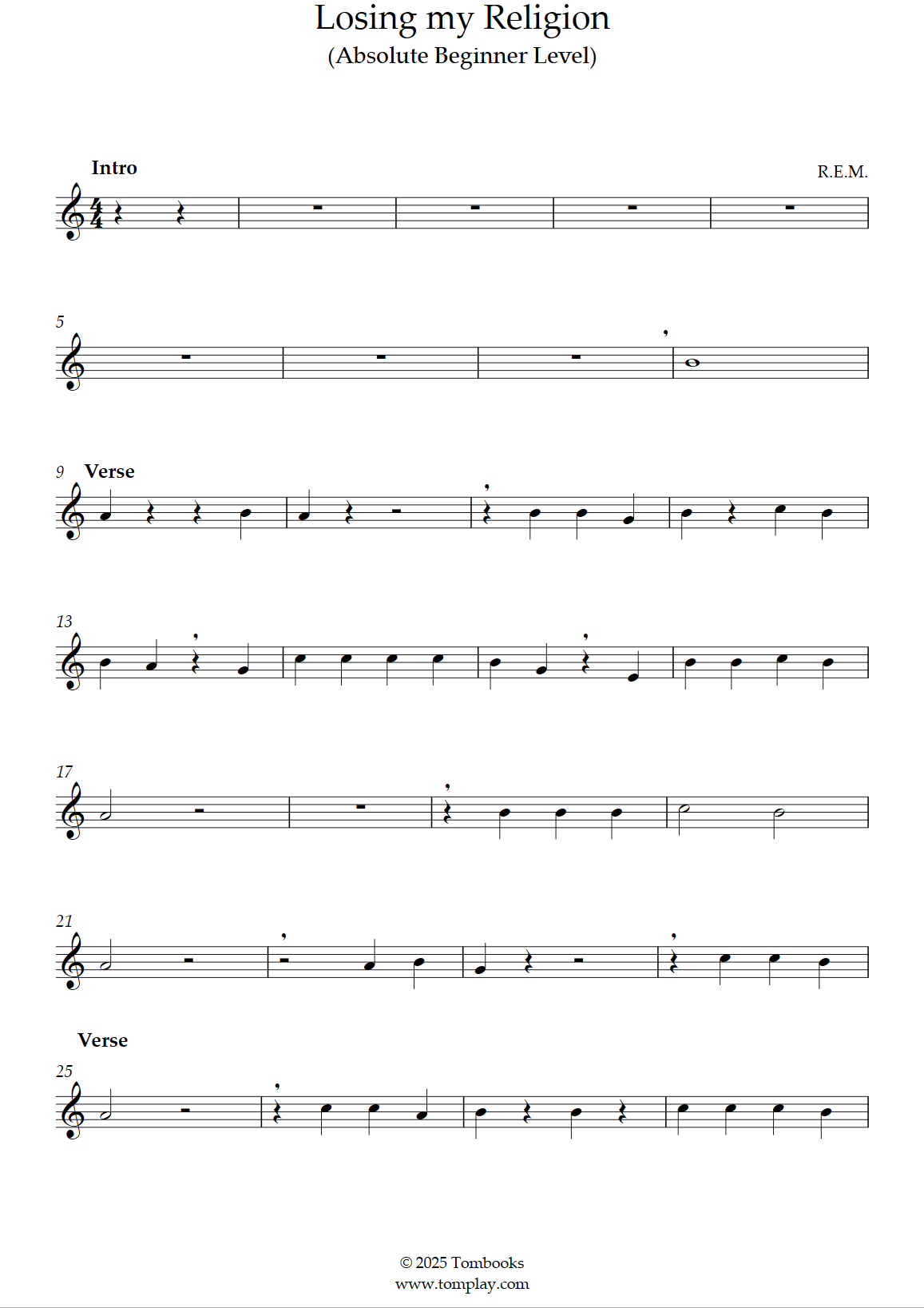 R.E.M. : Losing my Religion (niveau très facile, sax ténor)