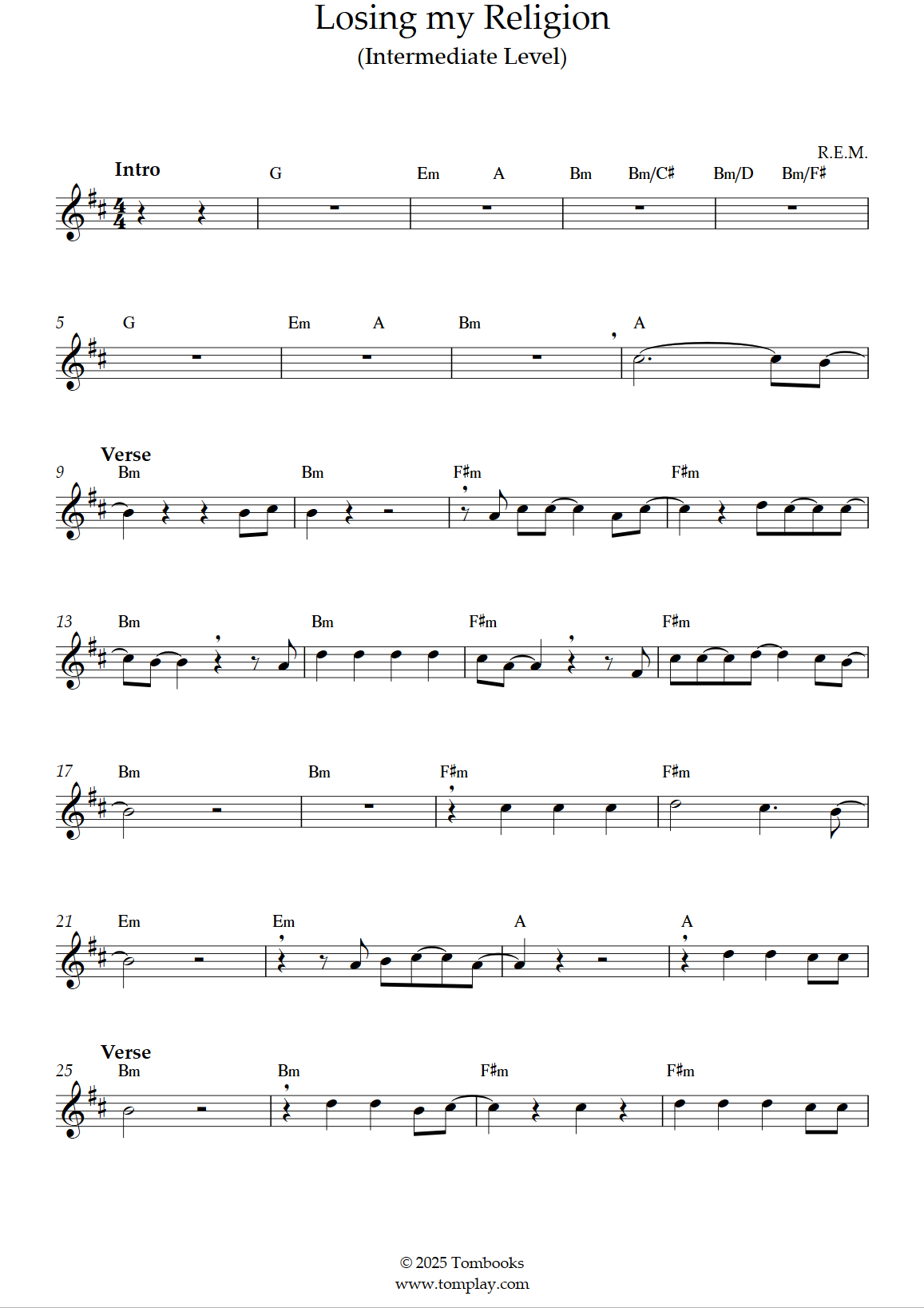 R.E.M. : Losing my Religion (Intermediate Level, Soprano Sax)