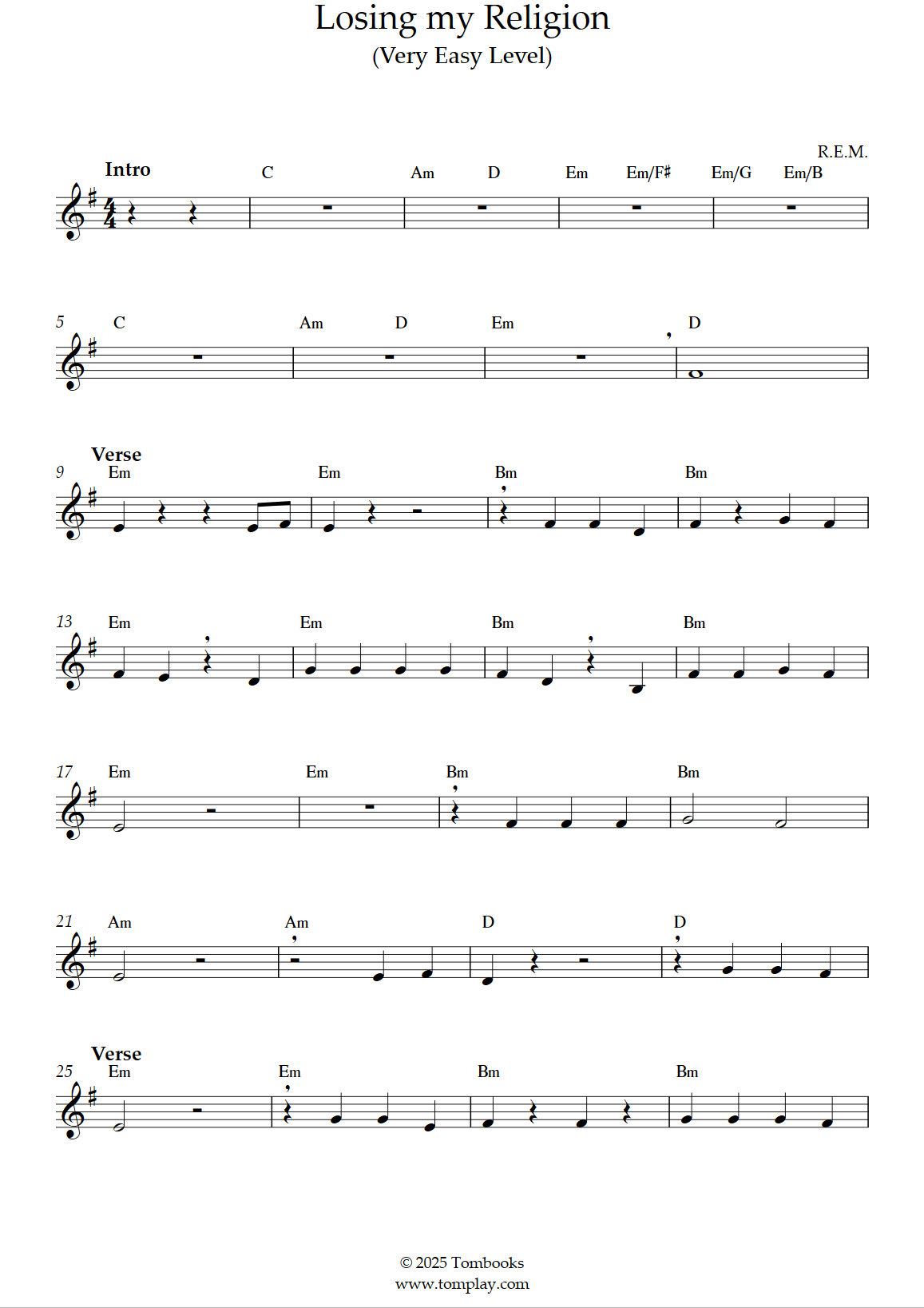 R.E.M. : Losing my Religion (niveau facile, sax alto)