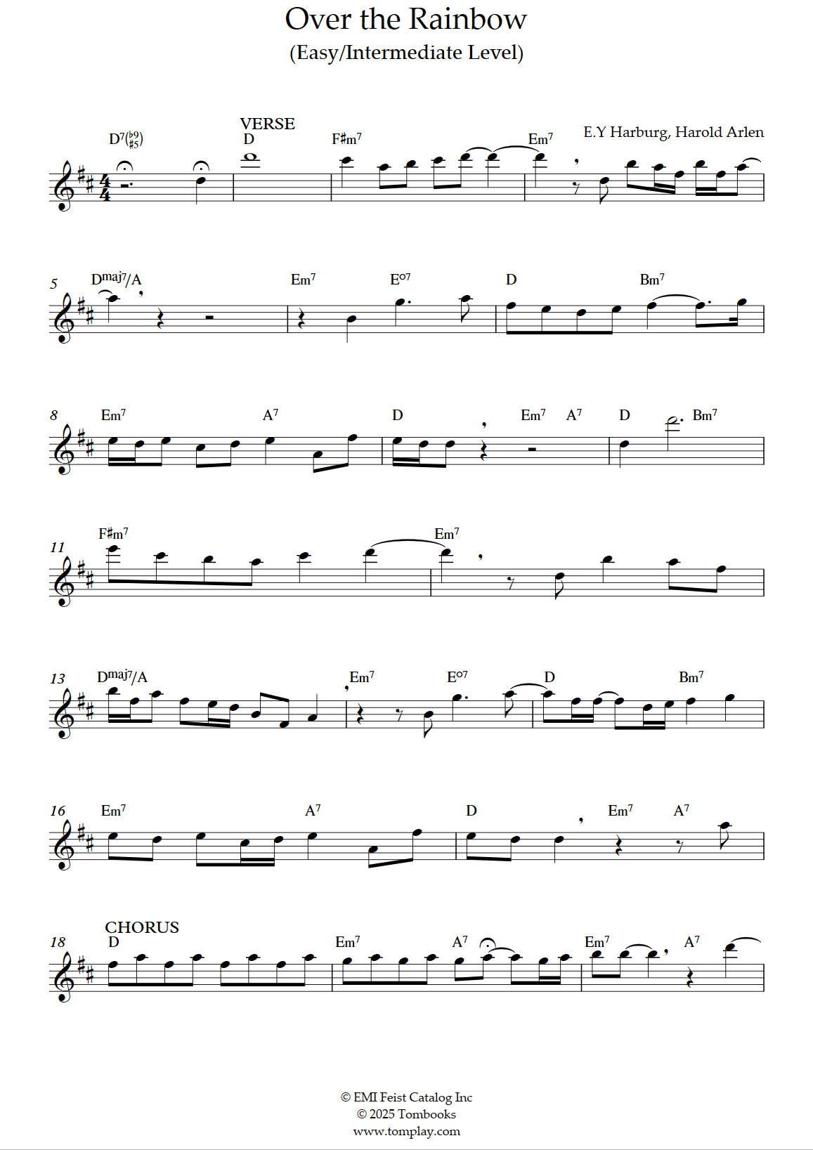 Téléchargez la partition Saxophone Over the Rainbow (niveau facile/intermédiaire, sax téno…