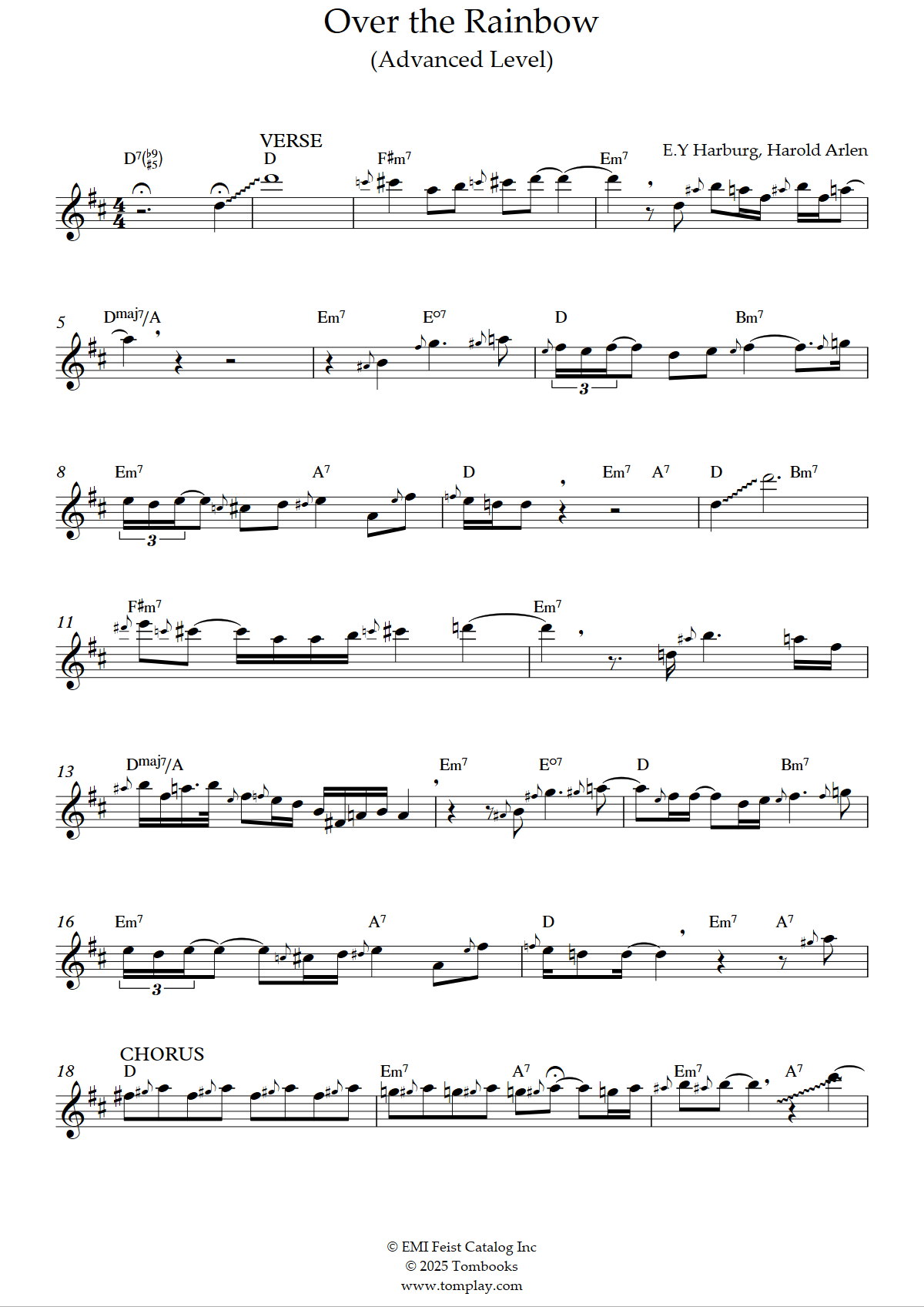 Téléchargez la partition Saxophone Over the Rainbow (niveau facile/intermédiaire, sax téno…