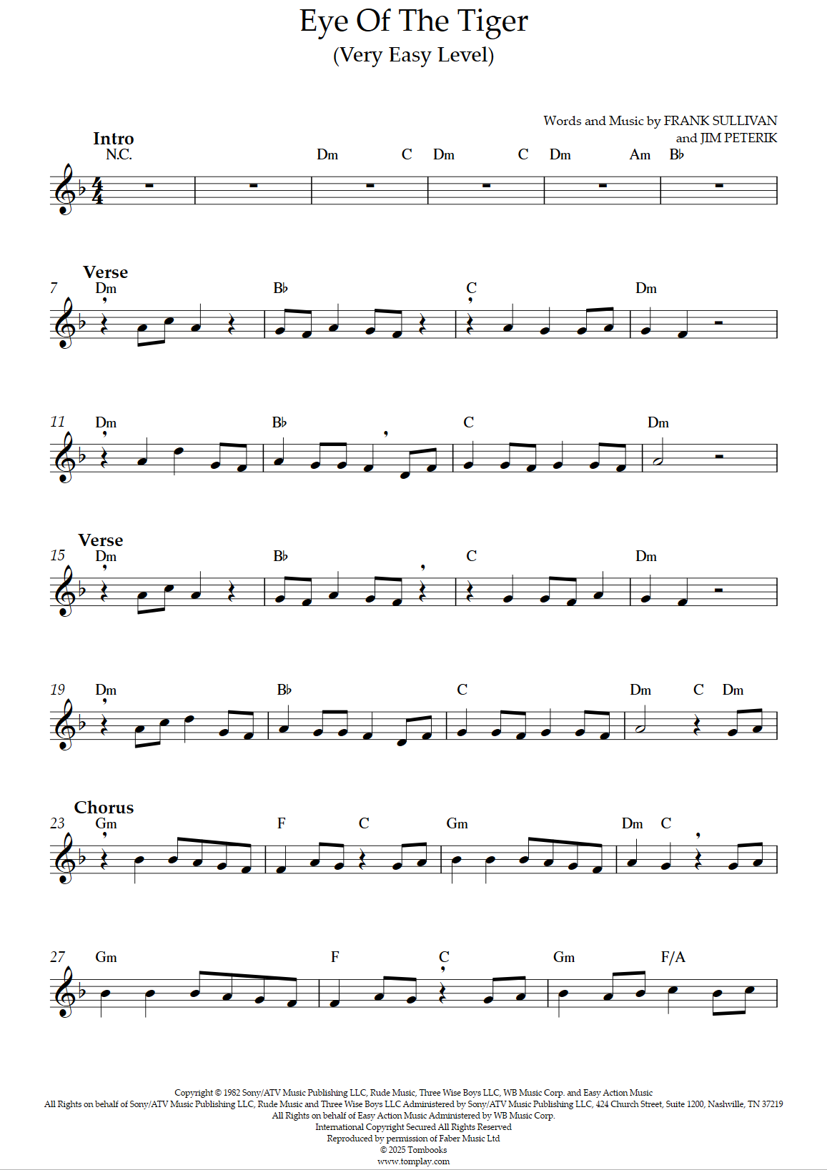 Téléchargez la partition Saxophone Rocky 3 - Eye of the Tiger (niveau très facile, sax sop…
