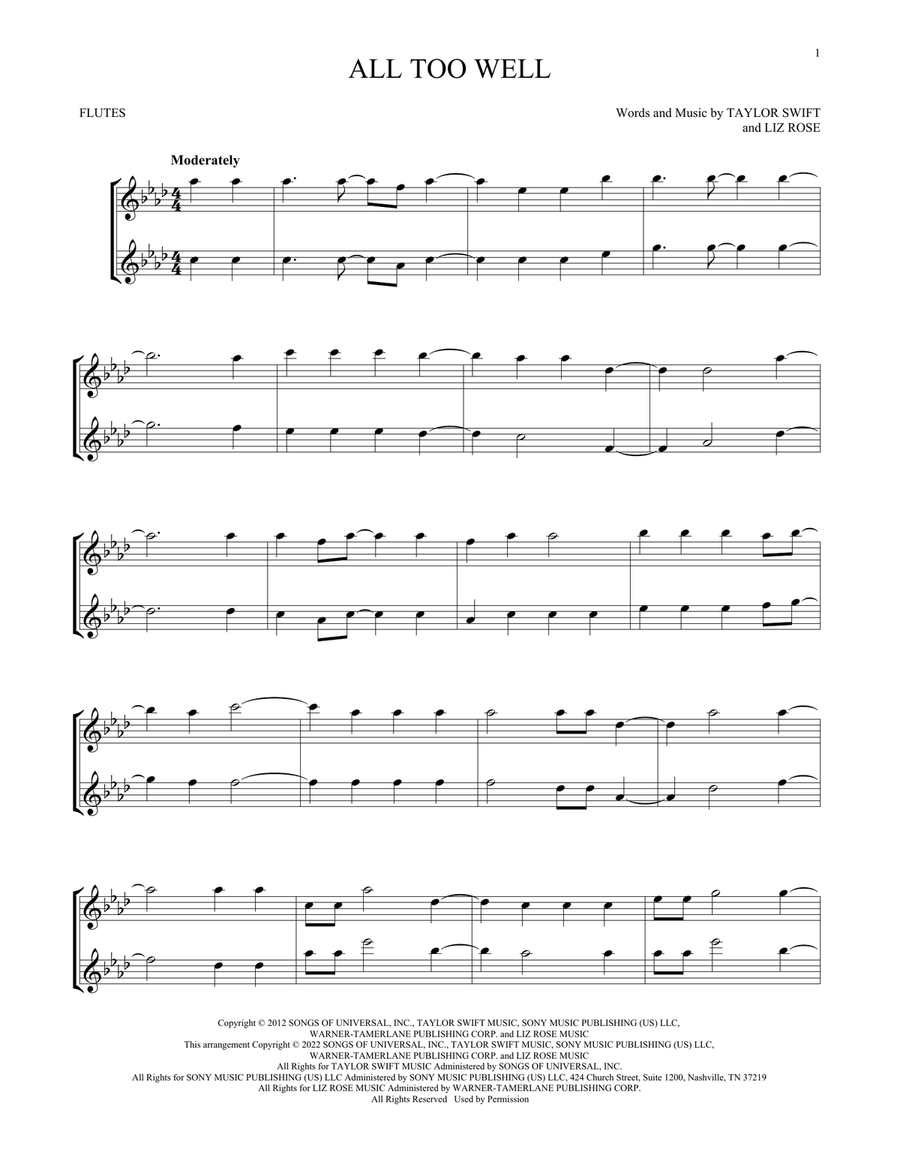 Flute Duet Flute - Level 2 - Digital Download SKU: A0.1432767 By Taylor Swift Feat. Post Malone. By Austin Post, Jack Antonoff, and Taylor Swift. Arranged by Gabriel Altali - @altaliclarinet. 21st Century,Pop. Score. 4 pages. Gabriel Altali #1013193. Published by Gabriel Altali (A0.1432767). Experience the captivating allure of 'Fortnight' with our exclusive collection of flute duet instrumental sheet music. Dive into the 1980s-influenced downtempo electropop and synth-pop ballad that has captivated audiences worldwide. Crafted with meticulous attention to detail, our sheet music brings to life the subtle electronic production and pulsing synth bassline that define this iconic track. Delve into the stylistic similarities with Swift's acclaimed 'Midnights' album, as noted by critics, and explore the power ballad sensibility reminiscent of legendary artists like Roxette, Cutting Crew, and Phil Collins. Each note and melody is meticulously transcribed to ensure an authentic musical experience that resonates with the essence of 'Fortnight.' As you immerse yourself in these duet arrangements, discover the narrative depth woven into the lyrics—a tale of love, longing, and suburban complexities. Let the music guide you through themes of fatalism, longing, and lost dreams, as portrayed in Swift's introspective commentary on life and love. Whether you're a seasoned musician or a passionate enthusiast, ourv flute duet instrumental sheet music unlocks the passion and emotion of 'Fortnight,' allowing you to bring this evocative musical journey to life in your own performances. Embrace the fusion of nostalgia and modernity, and elevate your musical repertoire with timeless melodies that transcend generations. Unlock the passion of 'Fortnight' today and embark on a musical journey like no other.