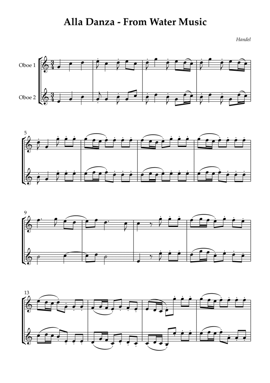 Oboe Duet Oboe - Level 3 - Digital Download SKU: A0.589748 Composed by Various. Arranged by David McKeown. Jewish,Wedding,World. Score. 34 pages. David McKeown #6090939. Published by David McKeown (A0.589748). 10 Klezmer Duets is an exciting collection of traditional Jewish dances and songs arranged by David McKeown as duets for two Oboes. These Duets explore different styles and flavours of Jewish music, from the freylachs, horas and bulgars used for dancing at weddings and Bar Mitzvahs, to bittersweet songs and gentle lullabies. Click the Youtube link above to listen to excerpts of all ten duets performed on Clarinet.Most of these duets are ideal for players of an Intermediate standard, with two or three more suitable for Advanced Intermediate.10 Klezmer Duets for Oboe areperfect for concert performances large and small; each piece lasts around three minutes.fully articulated to help develop that Klezmer style.great for helping with complex rhythms.road tested with scores of students and performed all over the world.fun to play.an exciting introduction to the world of Jewish music.32 pages adding up to more than half an hour of quality music.The ten titles are, 7.40pm, Ale Brider, Bublitschki, Hava Nagile, Kandel’s Hora, Mazel Tov, A Nacht in Gan Eden, Odessa Bulgar, Shlof Mein Kind and Silver Wedding, (Die Silberne Khasene).There are many more top quality arrangements and compositions by David McKeown for you to browse at https://www.sheetmusicplus.com/publishers/david-mckeown/6203