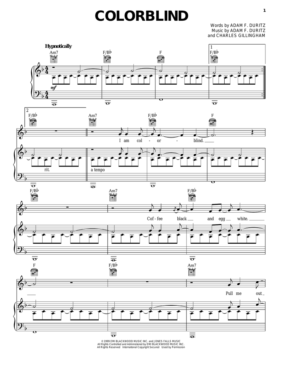Counting Crows: Colorblind sheet music to print instantly for voice, piano or guitar