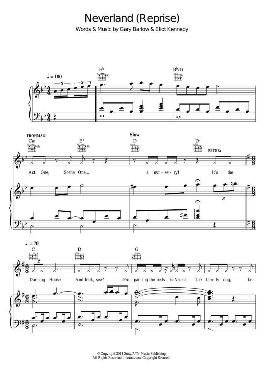 Gary Barlow & Eliot Kennedy: Neverland Reprise sheet music to print instantly for voice, piano or guitar