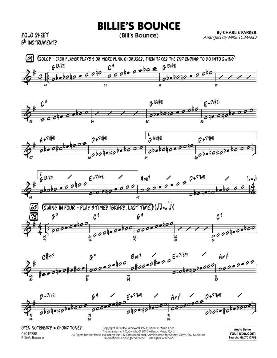 Billie's Bounce - Bb Solo Sheet