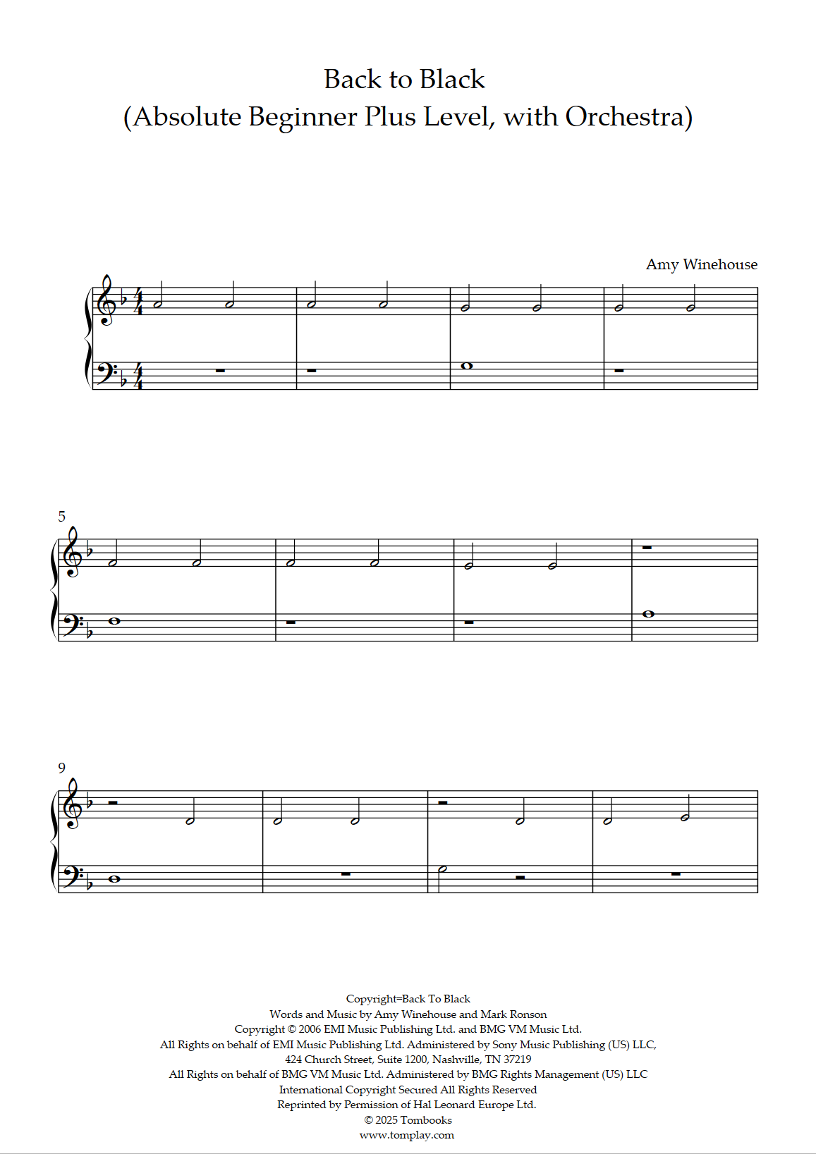 Téléchargez la partition Piano Back to Black (niveau débutant, avec o…