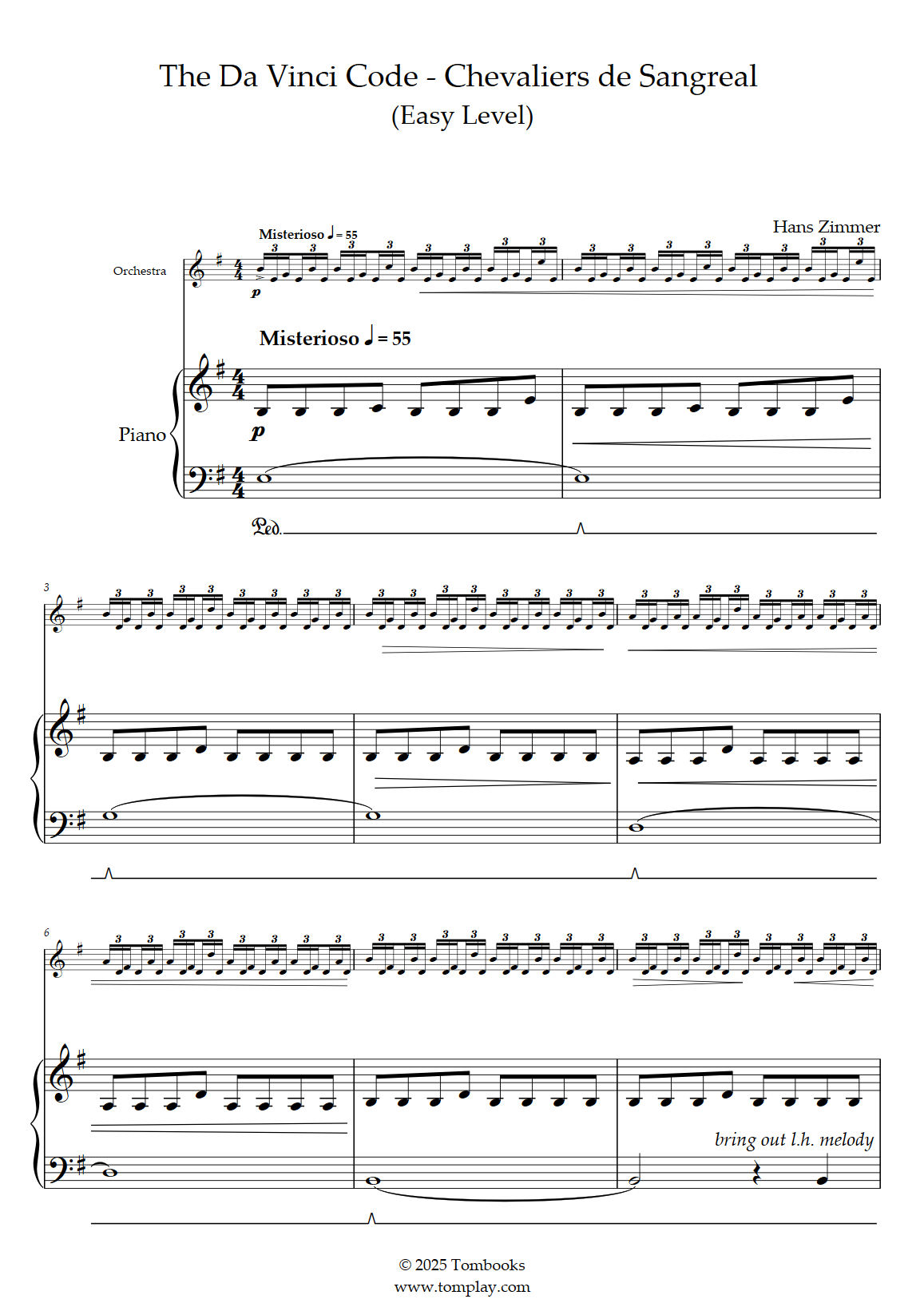 Téléchargez la partition Piano The Da Vinci Code - Chevaliers de Sangreal (niveau facile/i…