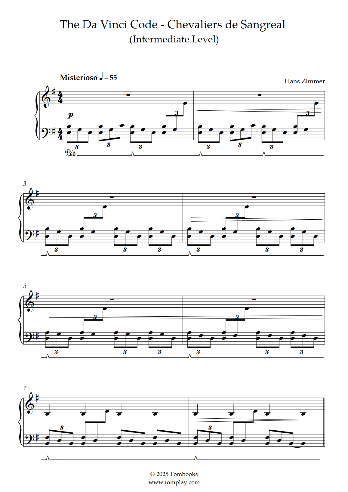 Téléchargez la partition Piano The Da Vinci Code - Chevaliers de Sangreal (niveau interméd…