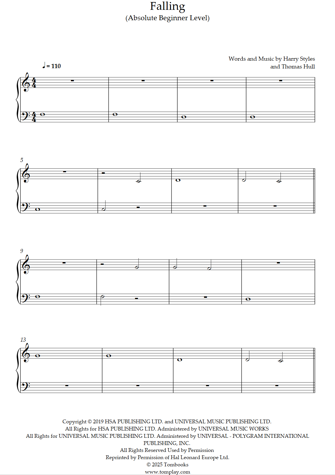 Falling F Major by Harry Styles Piano