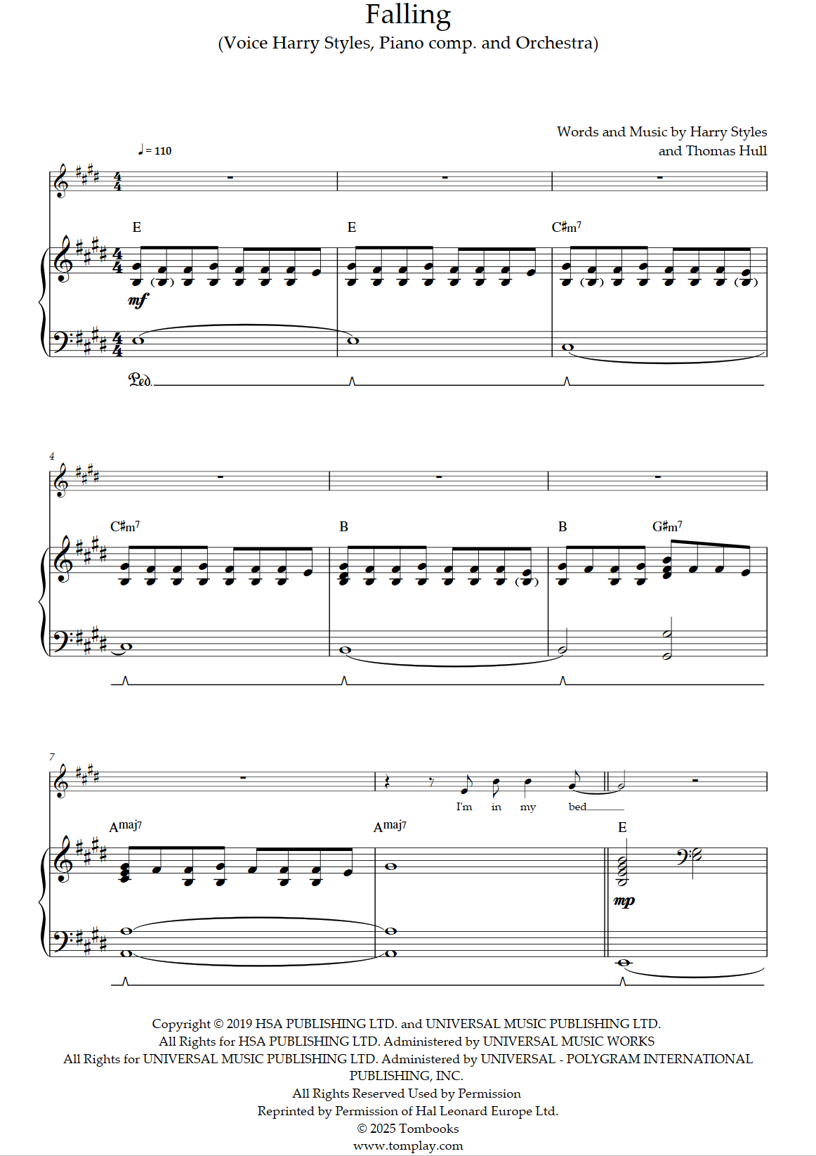 Téléchargez la partition Piano Falling (voix Harry Styles, acc. piano et orchestre) de Har…