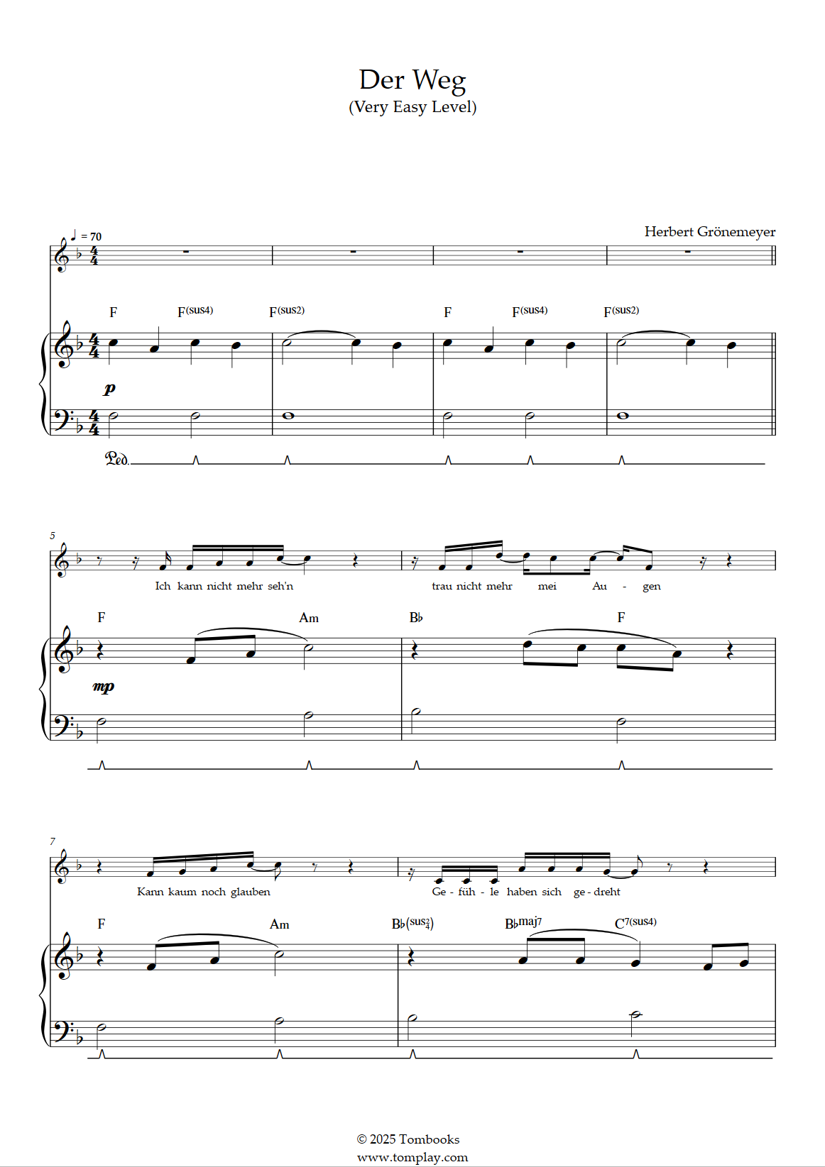 Téléchargez la partition Piano Der Weg (niveau intermédiaire, piano solo) de Herbert Gröne…