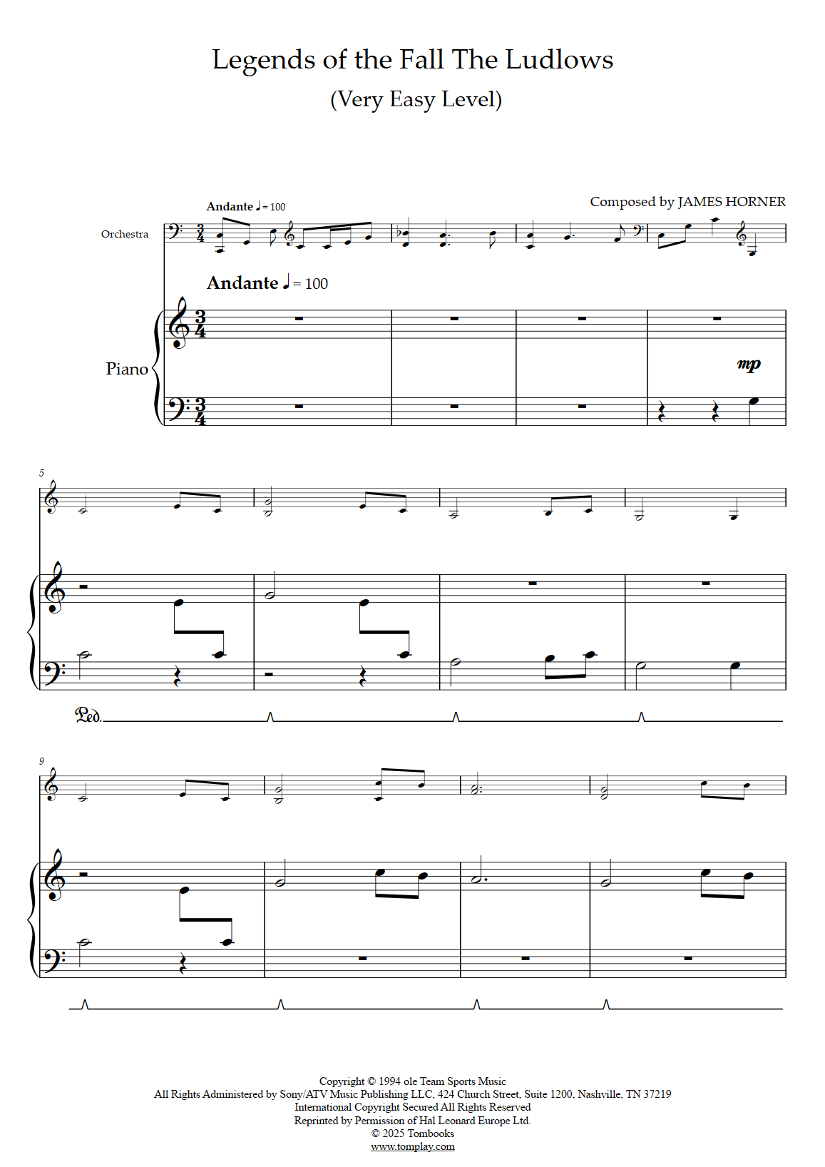 James Horner : Légendes d'automne - The Ludlows (niveau très facile, avec orchestre)