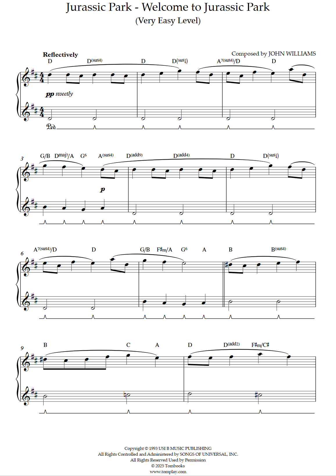 Téléchargez la partition Piano Welcome to Jurassic Park (niveau très facile, piano solo) d…
