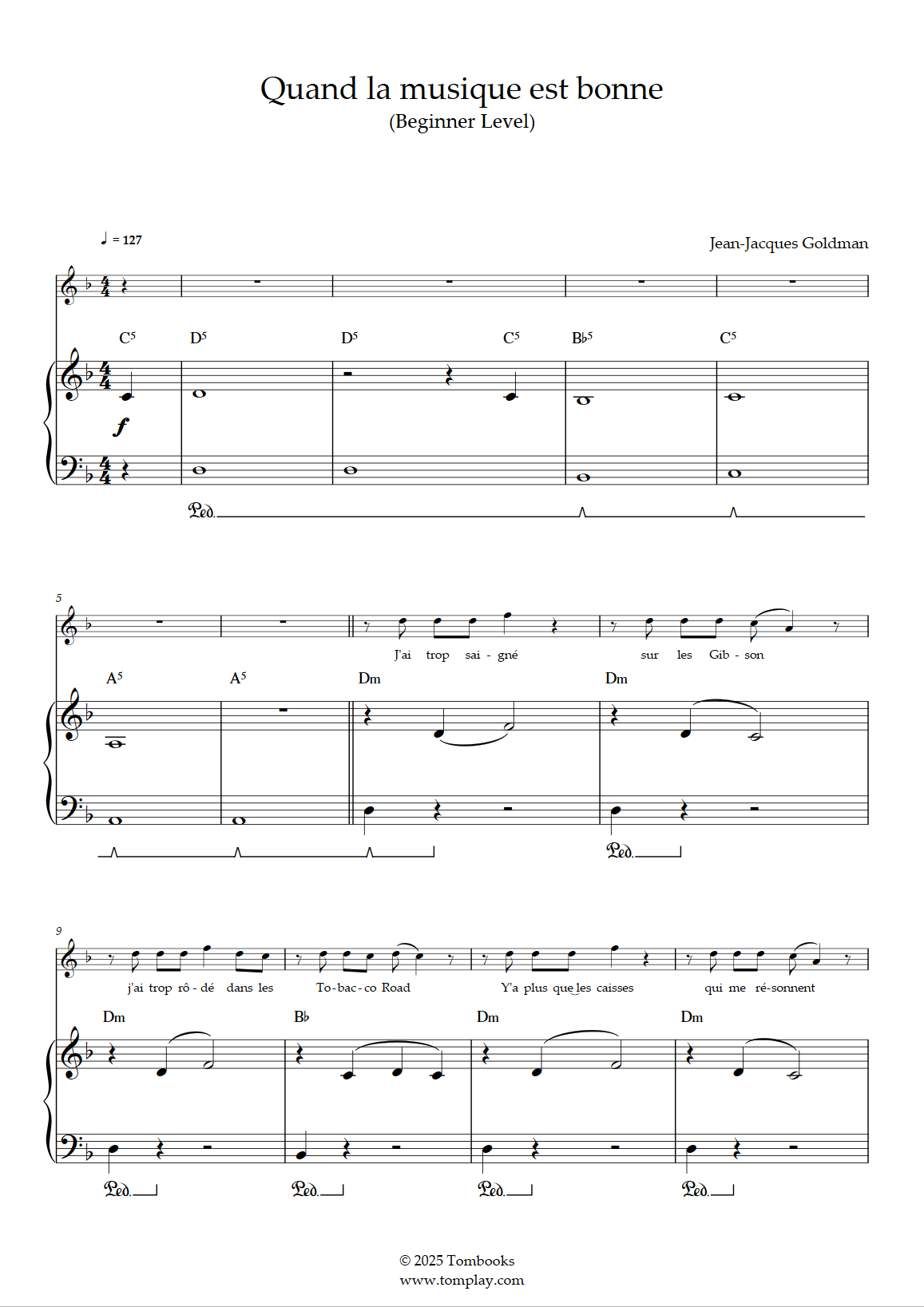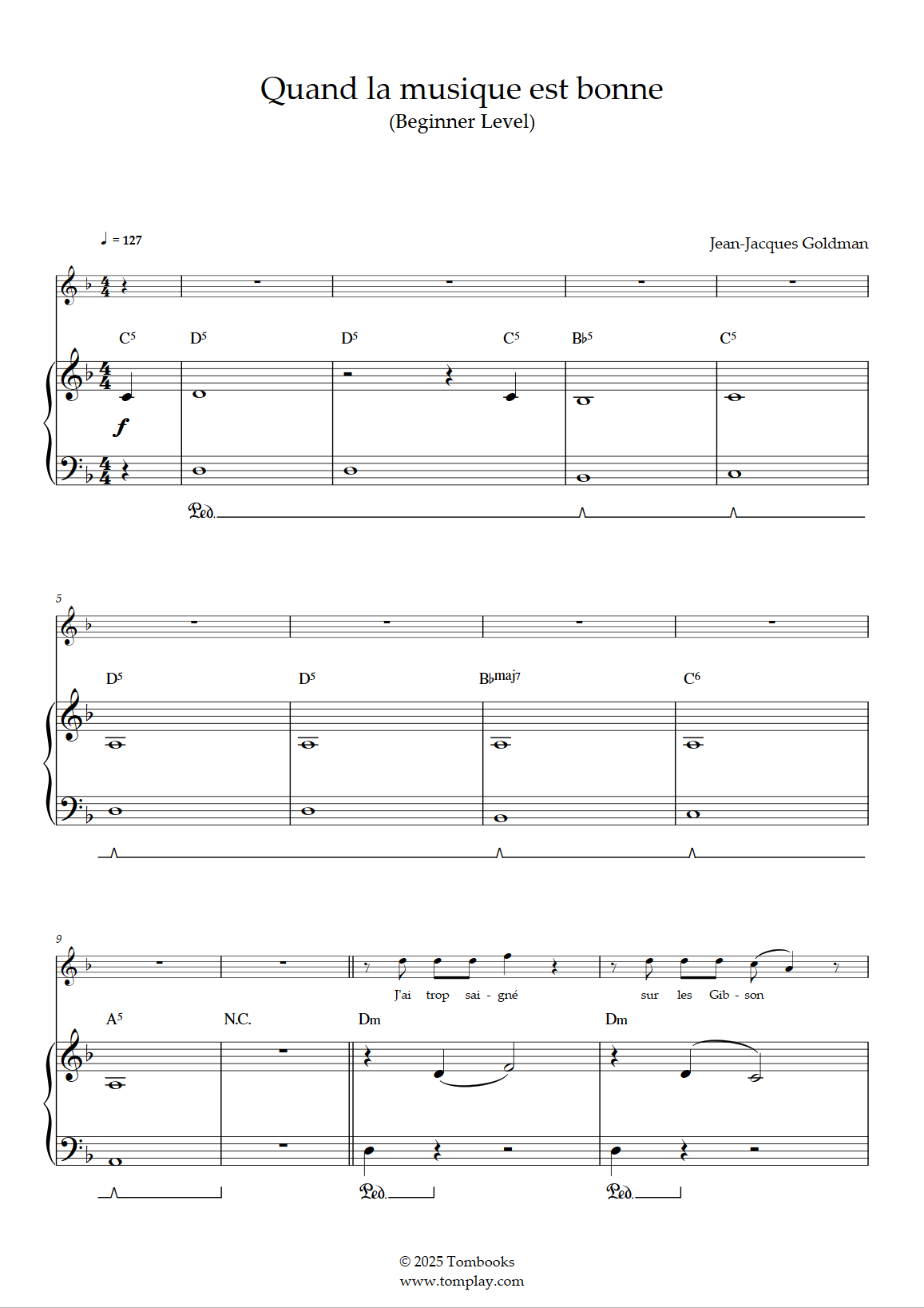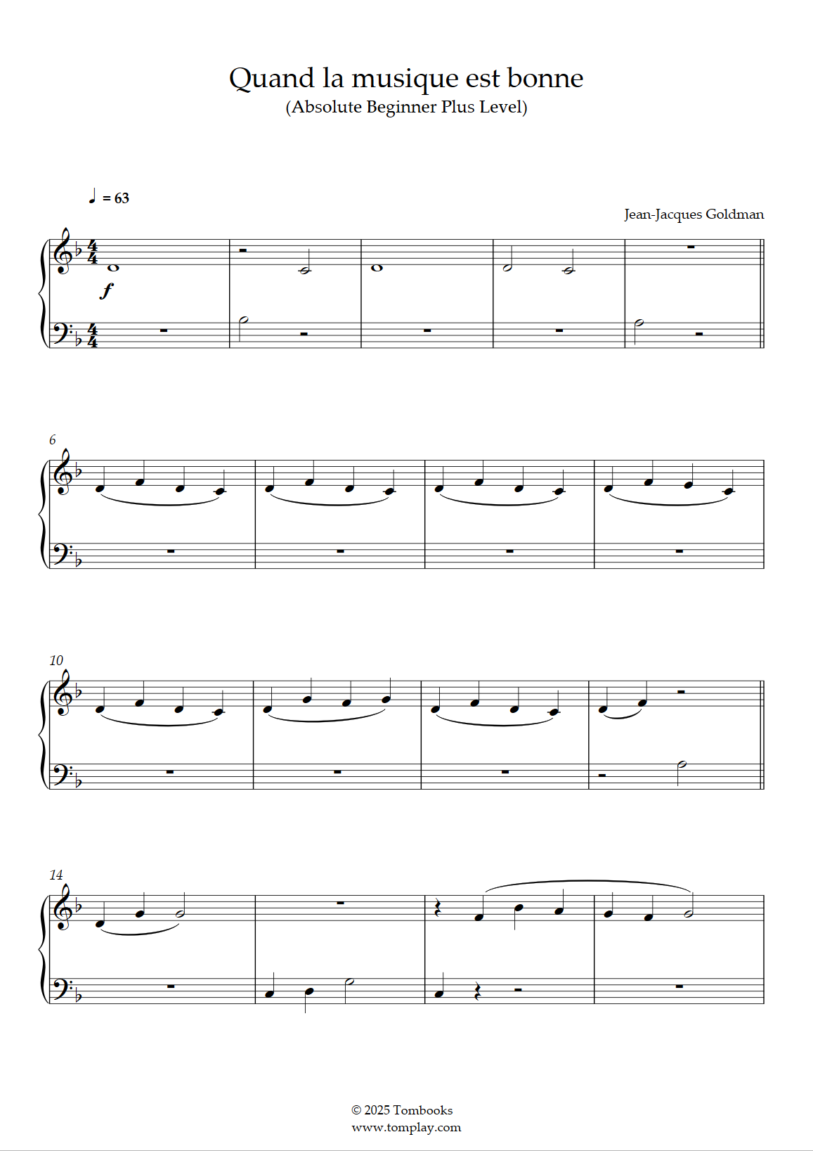 Téléchargez la partition Piano Quand la musique est bonne (niveau débutant absolu, avec or…