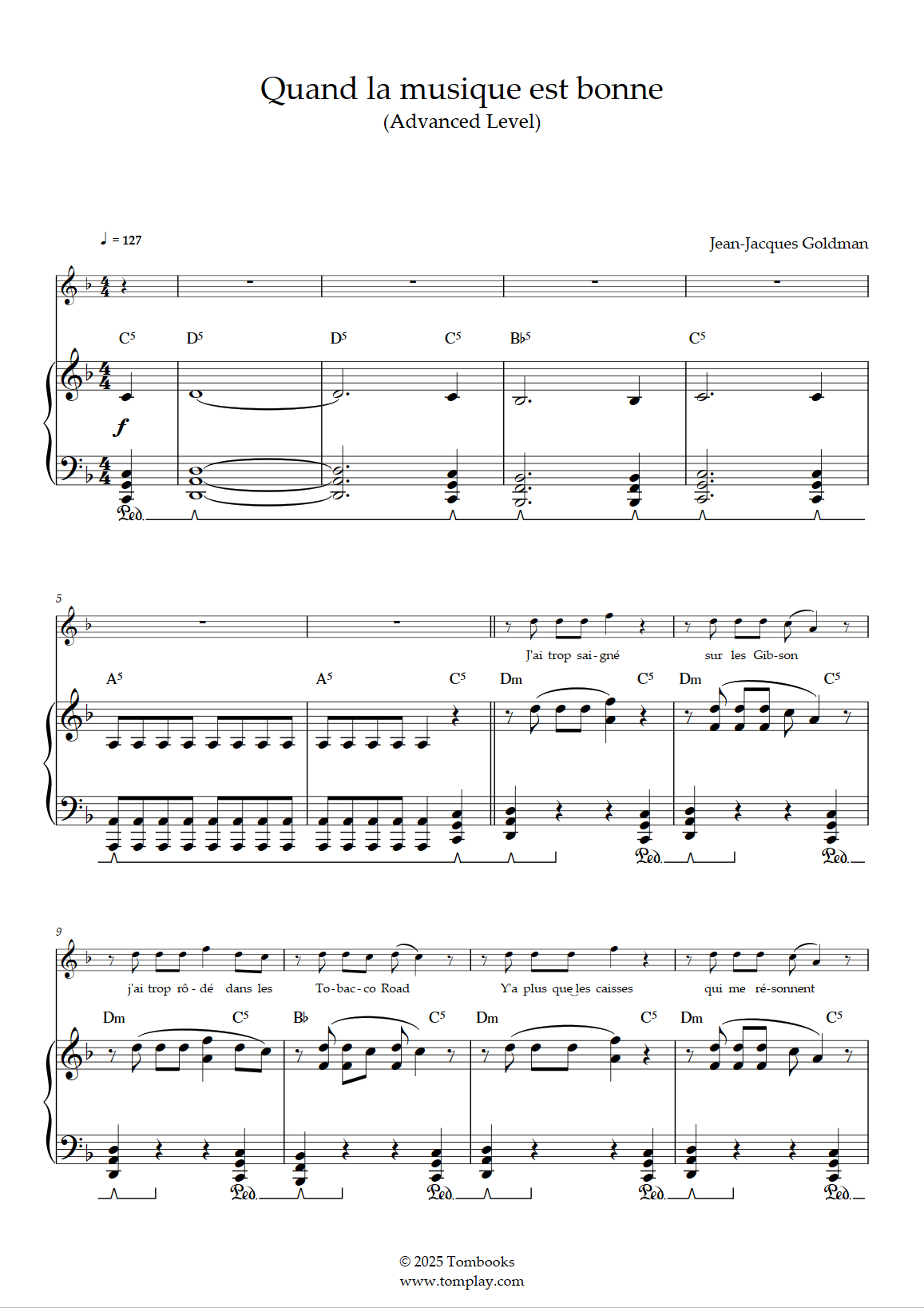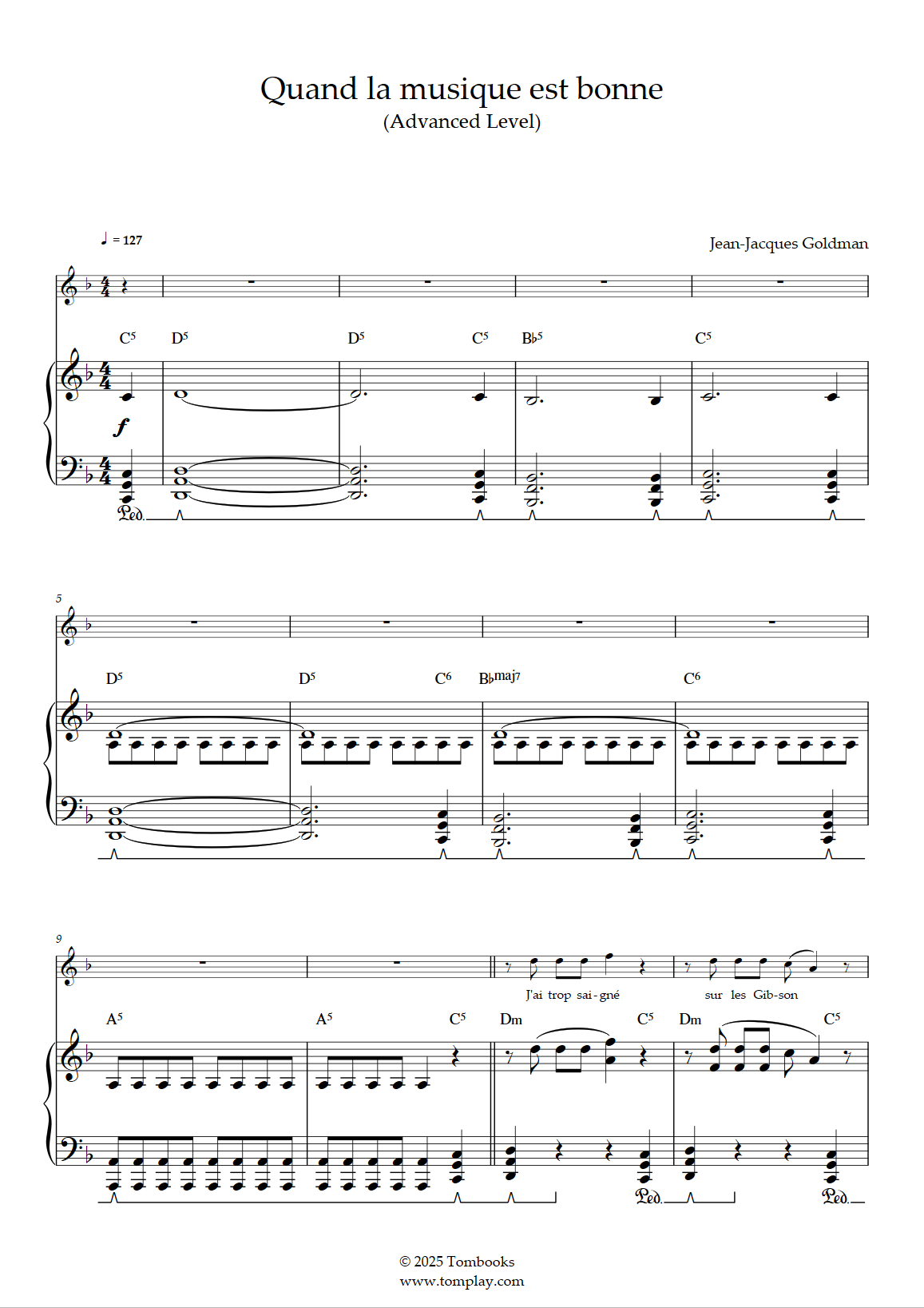Téléchargez la partition Piano Quand la musique est bonne (niveau difficile, piano solo) d…
