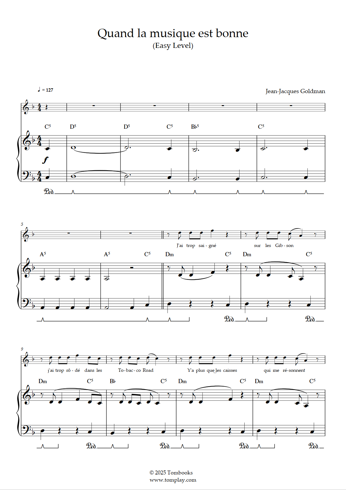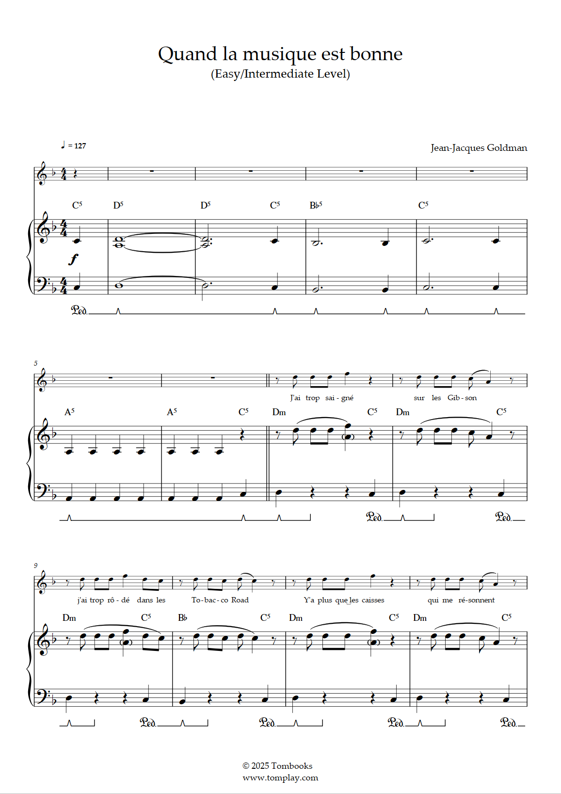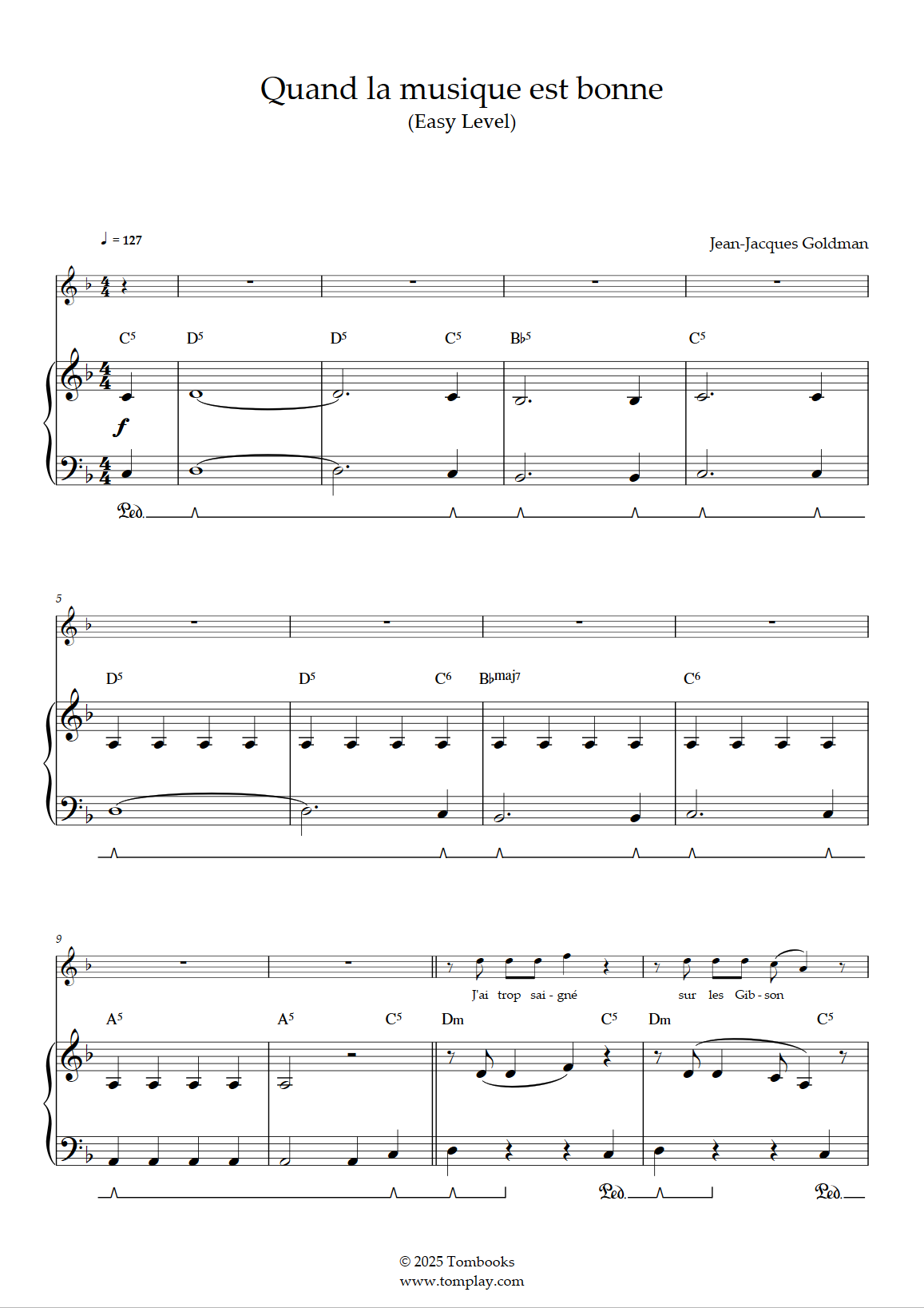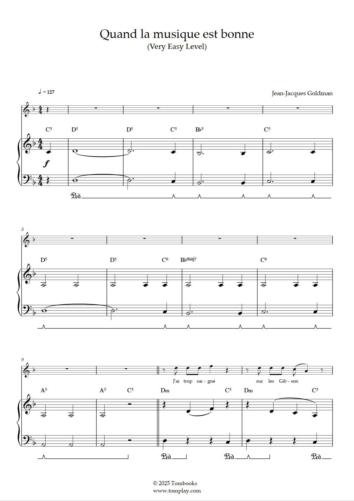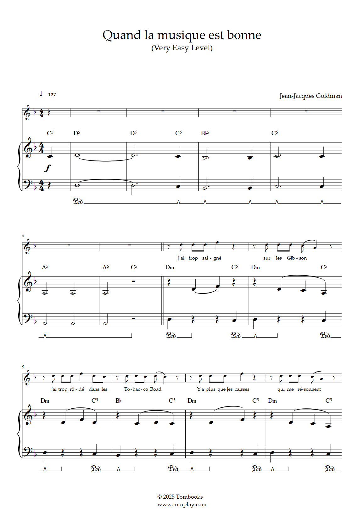 Téléchargez la partition Piano Quand la musique est bonne (niveau facile, piano solo) de J…