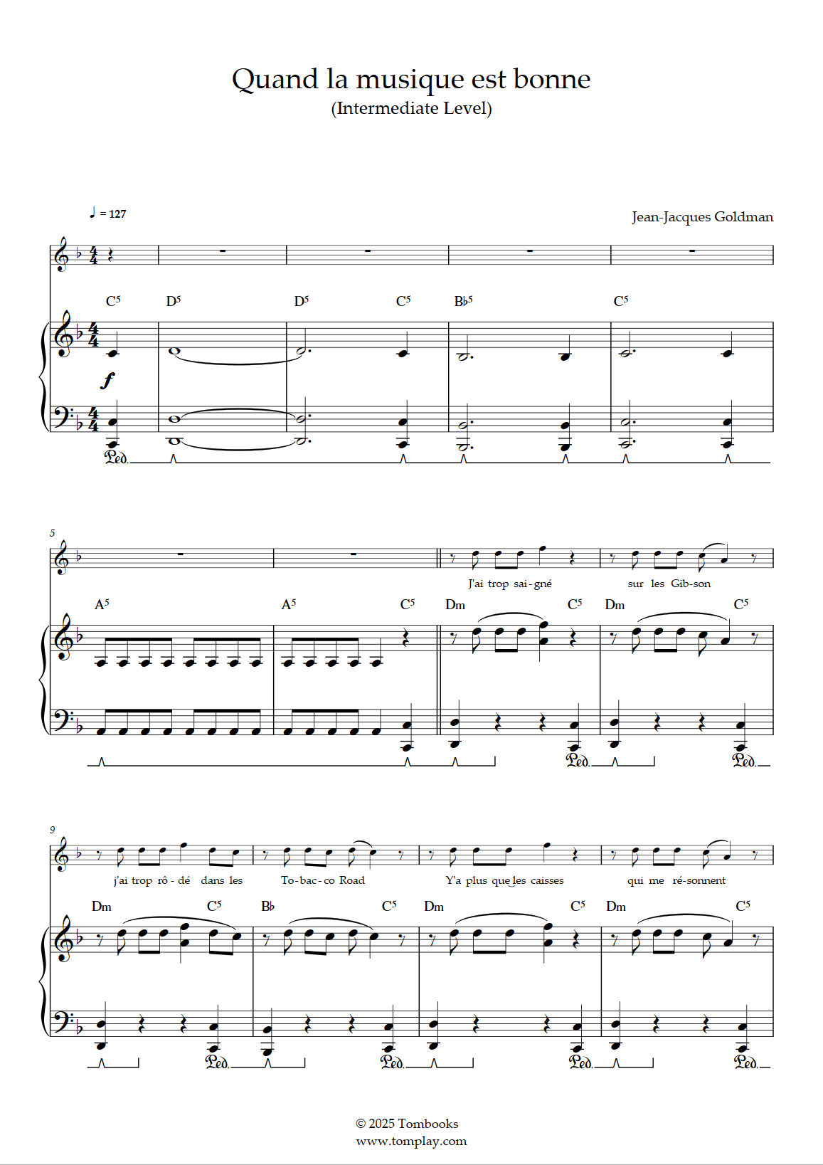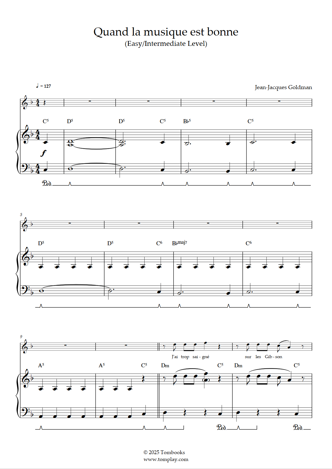 Téléchargez la partition Piano Quand la musique est bonne (niveau facile/intermédiaire, pi…